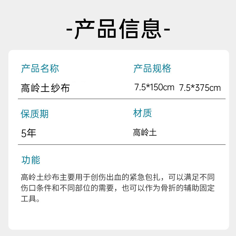 越境カオリン止血ガーゼ TCCC アウトドア応急処置 カオリン止血包帯 卸売