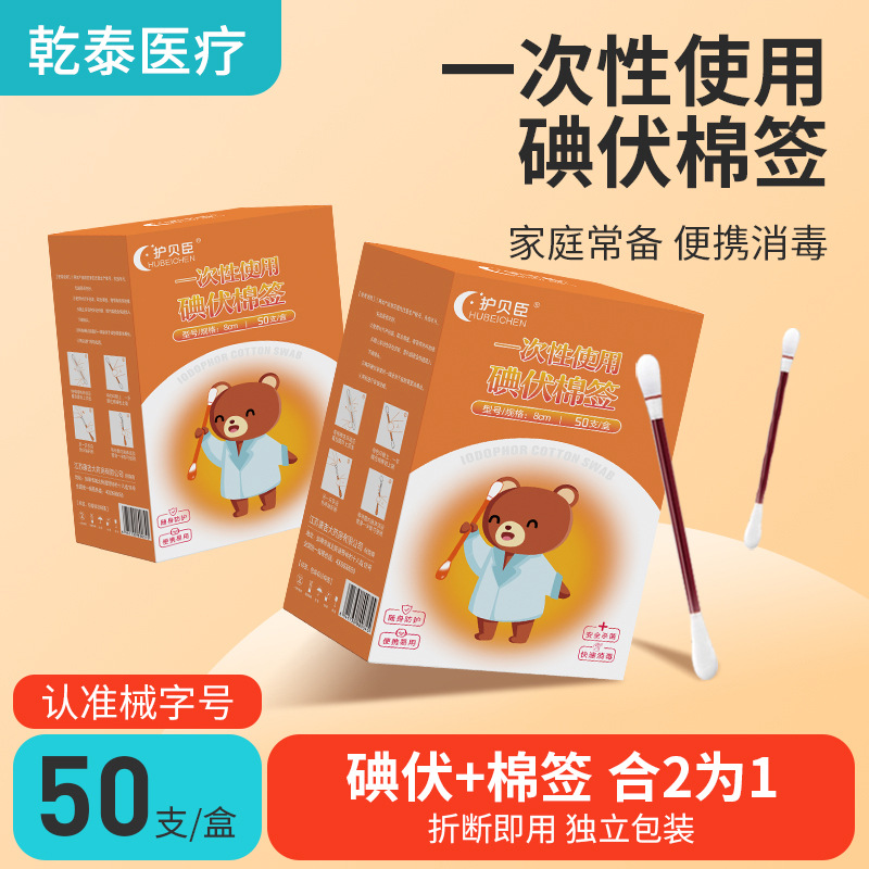 使い捨てヨードボルト綿棒消毒綿棒新生児臍医療用傷口消毒液綿球独立包装