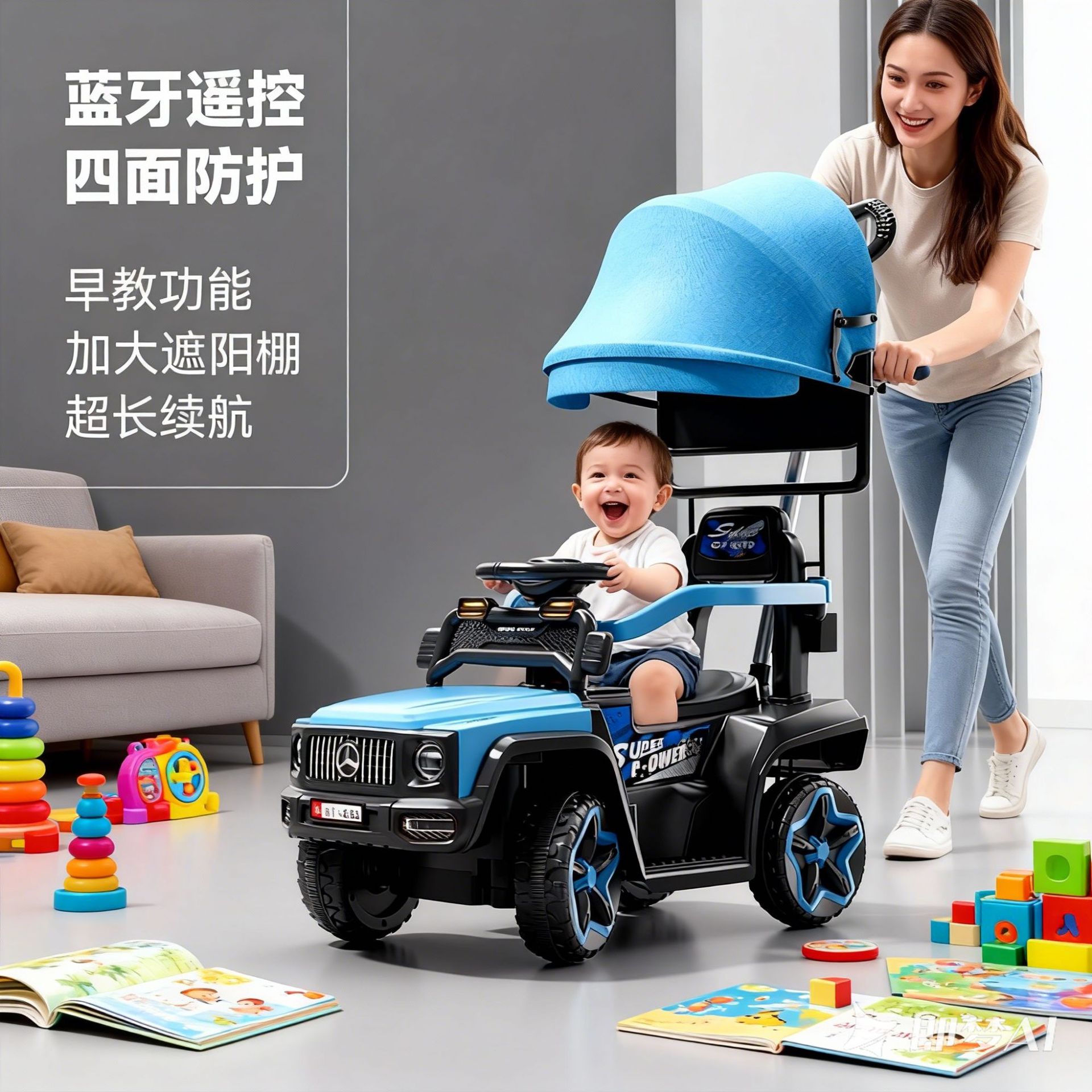 儿童四轮越野电动车 宝宝遥控充电玩具车男女小孩可坐宝宝手推车