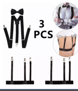 默认发黑色成人背带+蝴蝶结+脚套固定夹2个;