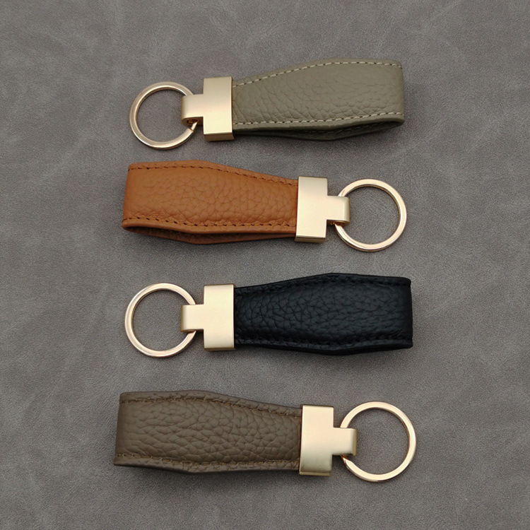 トップ層牛革自動車キーホルダーファッションシンプルキーチェーンリング金属ストラップ