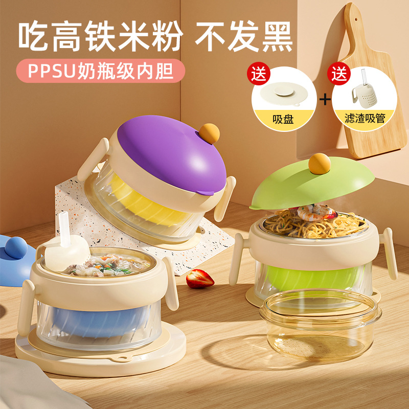 ベビーフードボウル、高鉄米粉、水入り保温ボウル、PPSU恒温子供用食器、卸売在庫あり