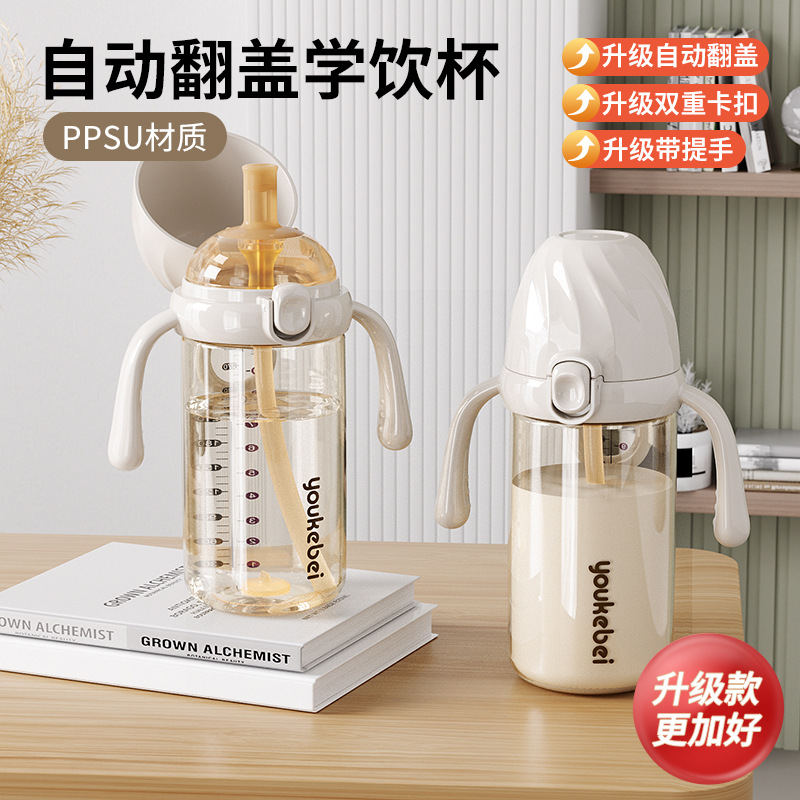 PPSU哺乳瓶は蓋をひっくり返して学飲カップのストロー哺乳瓶の大きい赤ちゃんは直接コップを飲んで水を飲んでミルクを飲むカップのメーカーの現物の卸売りを飲みます。