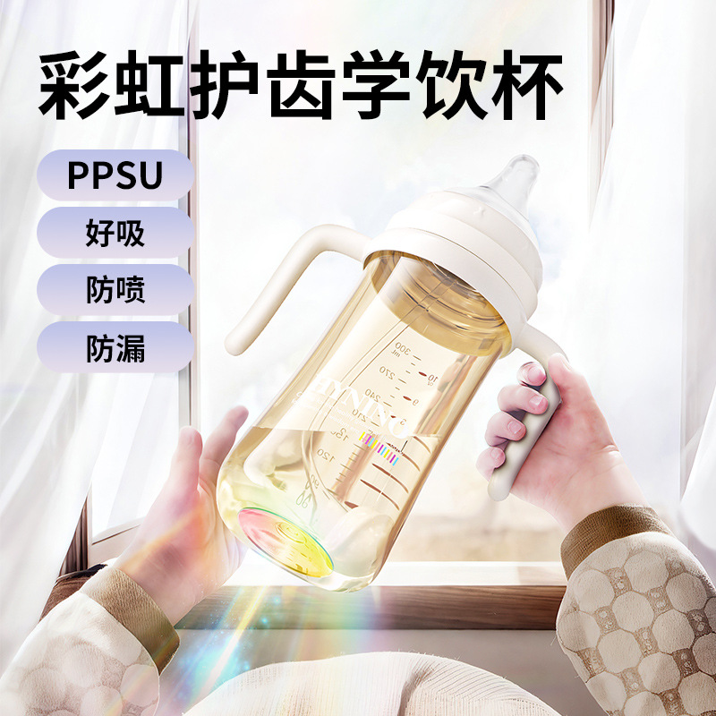 赤ちゃんストロー哺乳瓶PPSU虹哺乳瓶児童学飲カップ1本3本ミルクで水を飲むアヒル口ストローカップ
