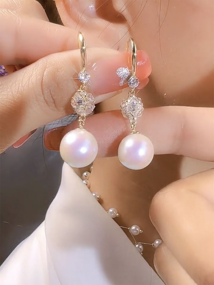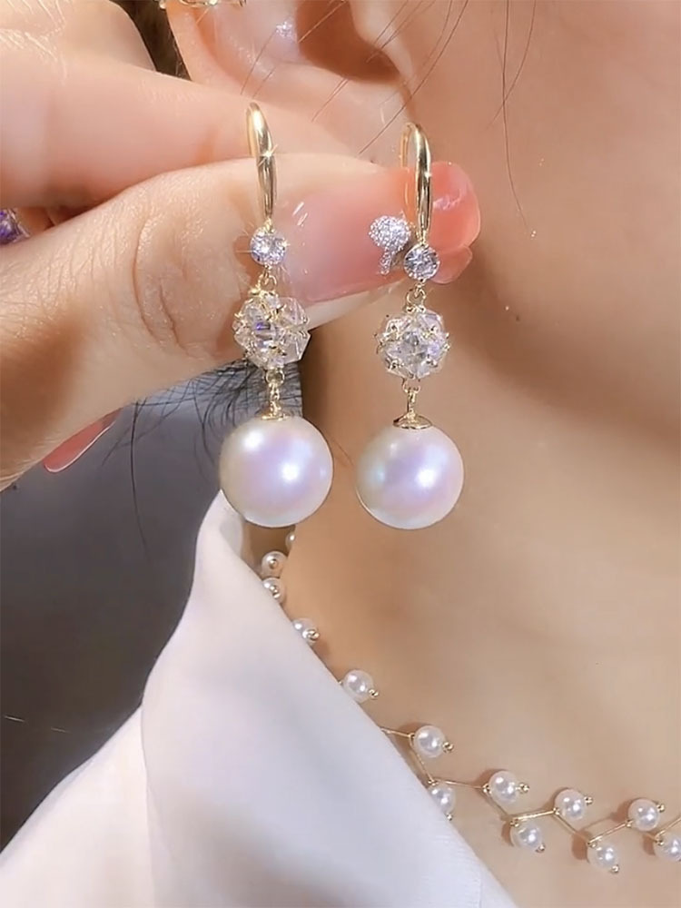 2WAYで着用できるフルダイヤモンドパールイヤリング、多用途でファッショナブルで女神のような気品漂う、高級感のあるネットセレブトレンドイヤリング。