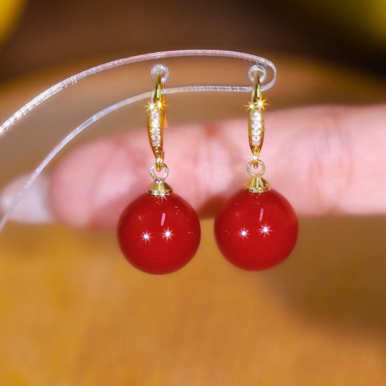 高級感のある軽やかな贅沢、アカシア豆イヤリング、2025年新作、赤いパールイヤリング、社交界の気質、甘いイヤリング、トレンド