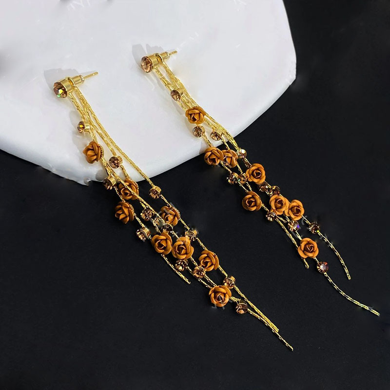 気質の長いタイプの大衆のデザイン感のバラの花のフリンジイヤリングの女性のファッションは顔がやせています。