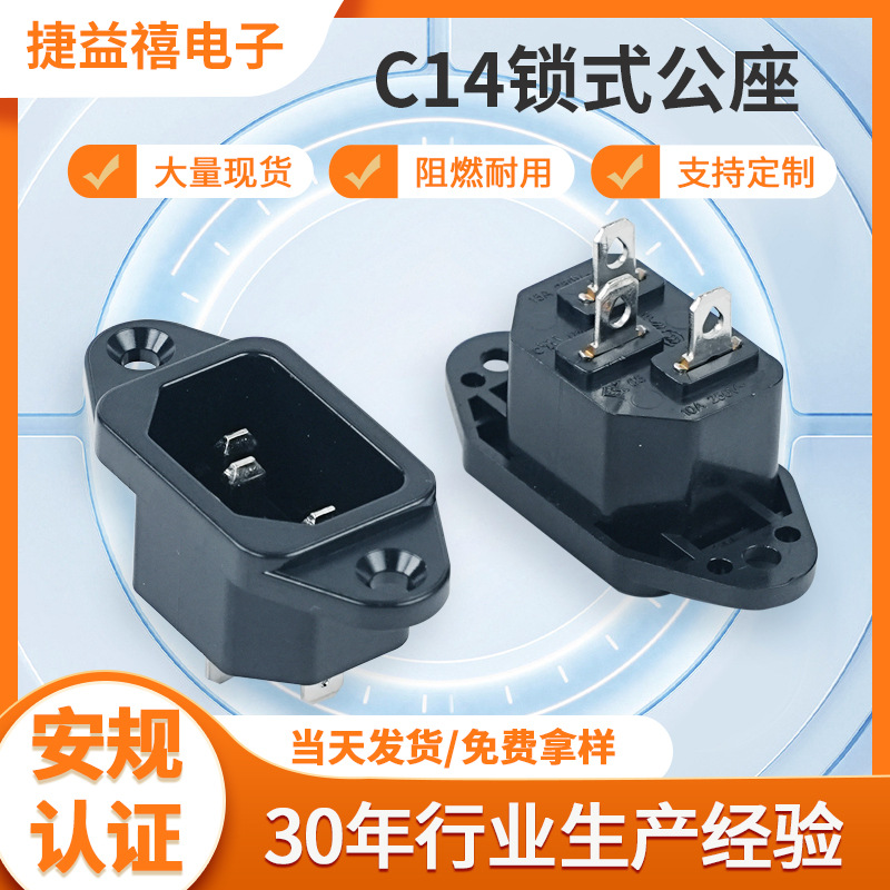 メーカーC14ロック式オス型黒色ピン型電源ソケット三極耳付きネジ穴付きAC電源ソケット