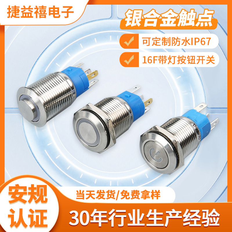 金属ボタンスイッチプッシュ式セルフリセット高頭円頭平頭16mm溶接足線付き防水ボタンスイッチ