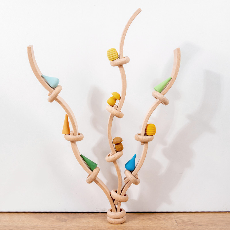 四つの要素の森の小さい木の家のサンゴは木の子供のままごとのおもちゃのinsを詰めて積み重ねます。