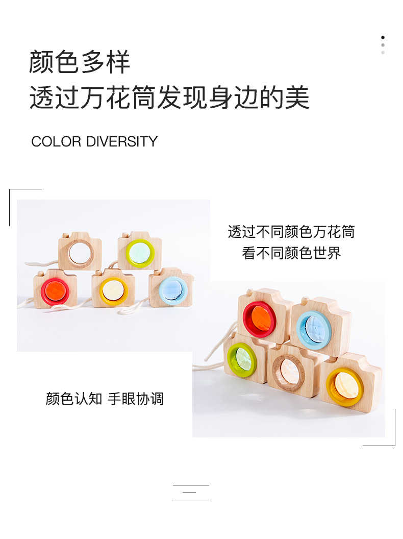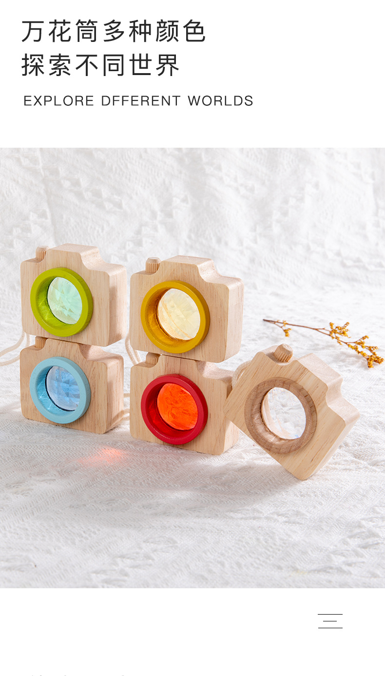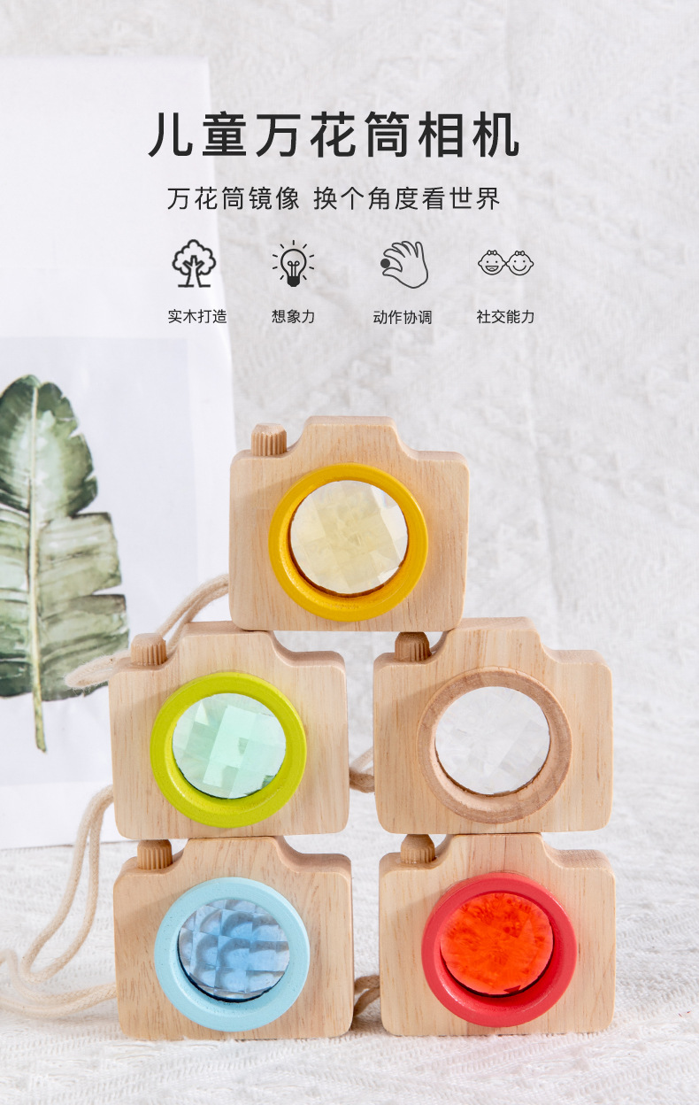 木製ミニ多プリズム万華鏡カメラ子供知育玩具魔法ビーストビー効果万花鏡