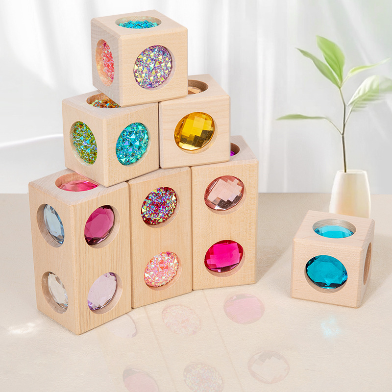蒙氏児童玩具カラーアクリル光積木光感覚透明レンズ幼稚園教具熱売