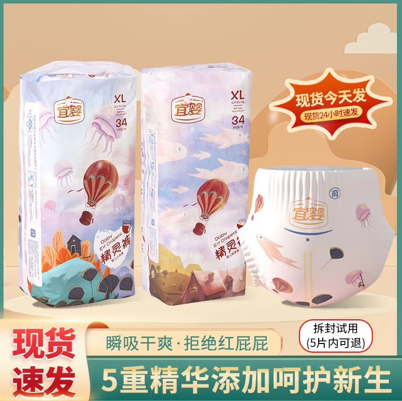 宜婴精灵婴儿拉拉裤L/XL/XXL/XXXL超薄透气纸尿裤婴儿尿不湿正品