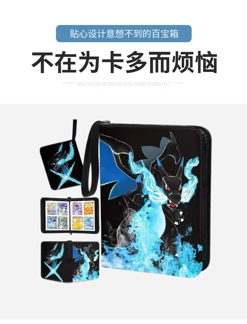 Amazon 直接供給ポケモンカードアルバム収納ブックカードアルバム四方格子大容量レザーアニメジッパー収納袋