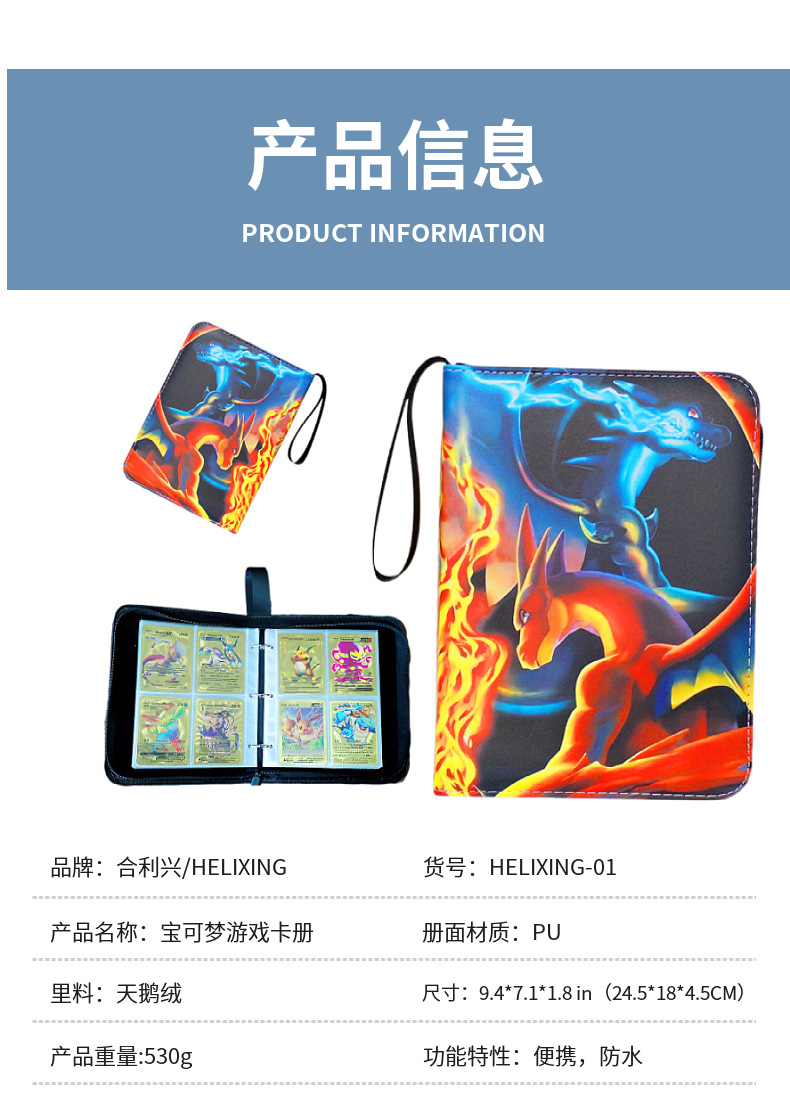 アマゾン精霊宝可夢カード冊皮質ファスナールーズリーフ収集冊ポケモンPTCGカード冊収納バッグ