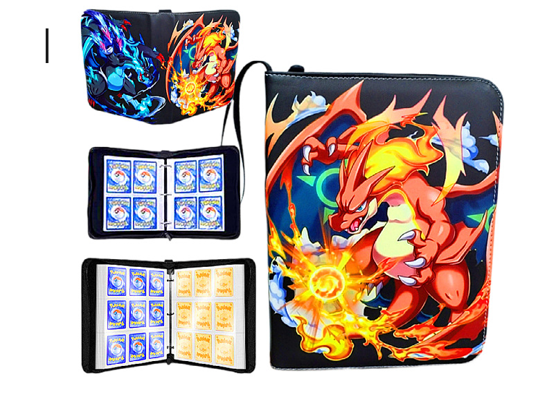 ポケモン ゲーム アニメ カード コレクション ブック 二次元ゲーム カード ブック 4 正方形グリッド レザー ジッパー ストレージ カード ブック
