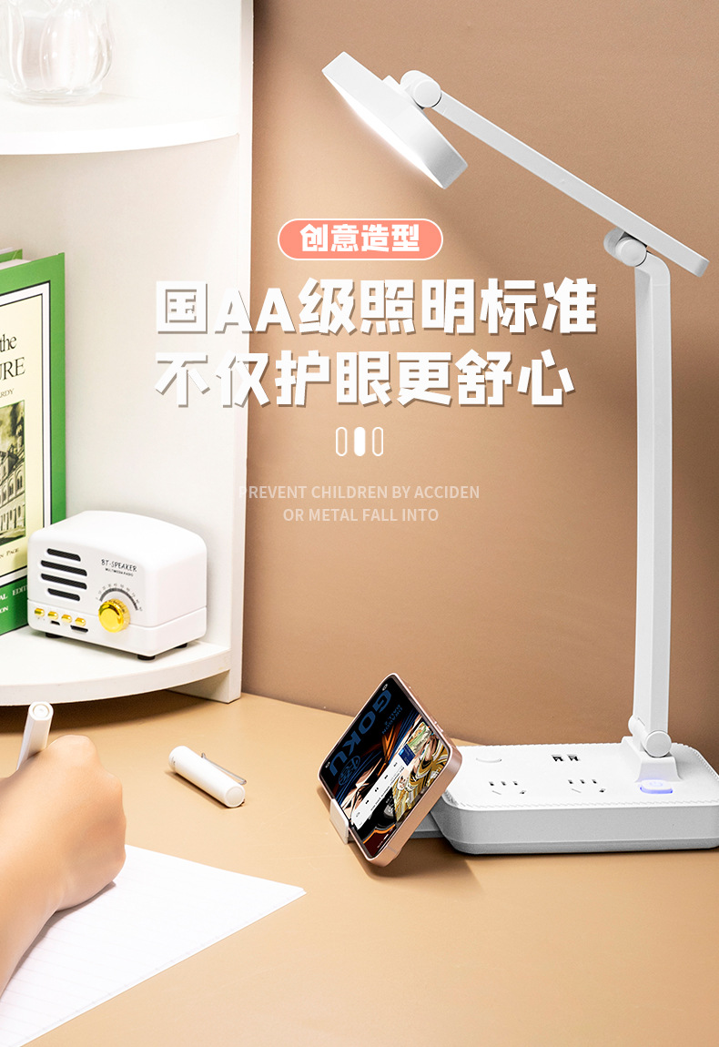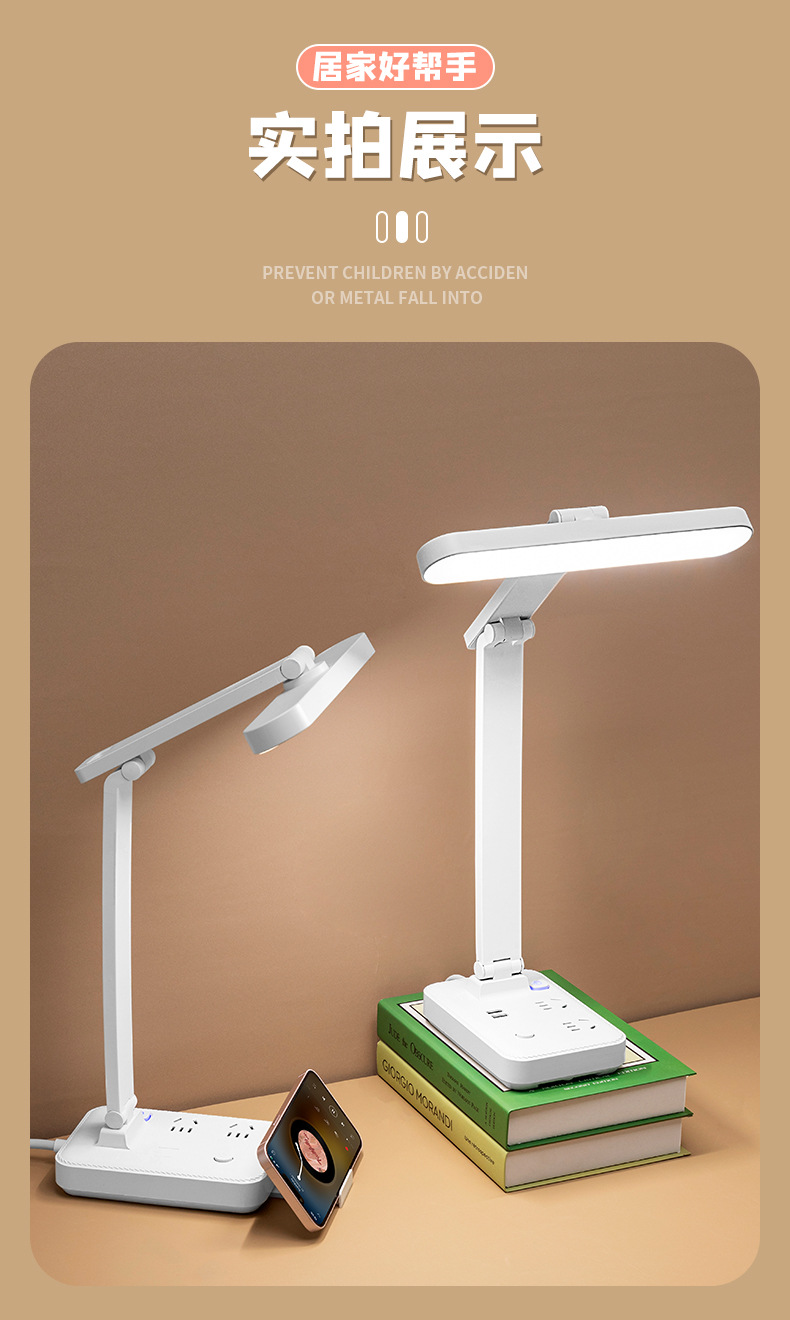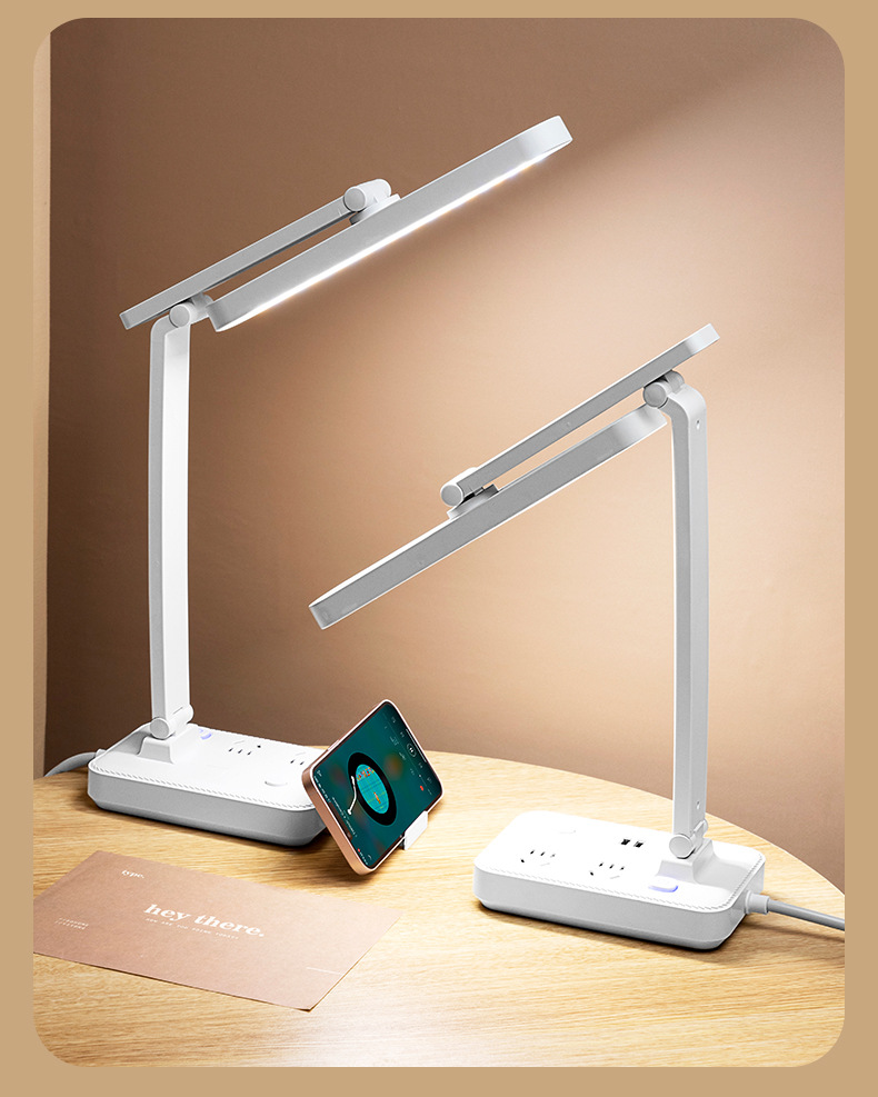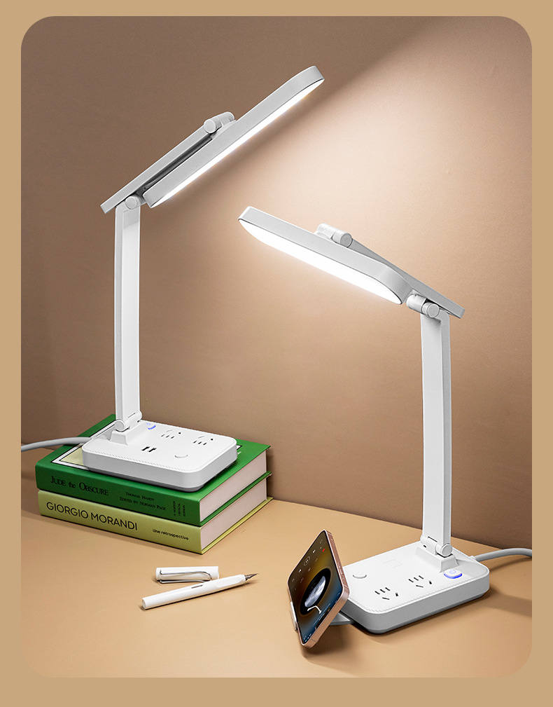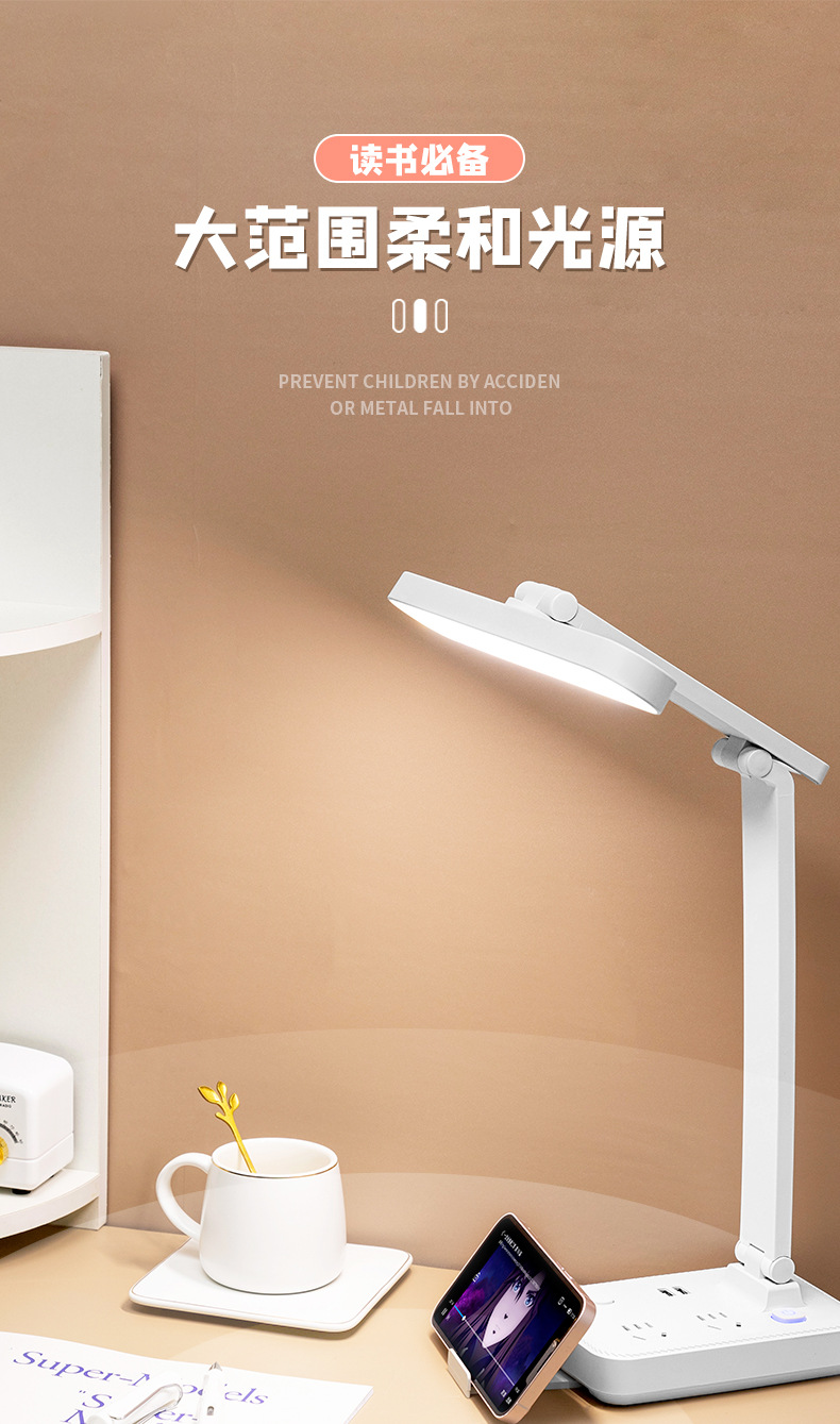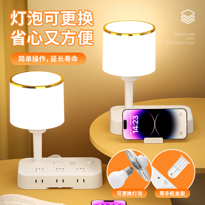 目保護電気スタンド学習コンセント付き一体読書灯学生寮児童近視防止寝室ベッドサイドランプ
