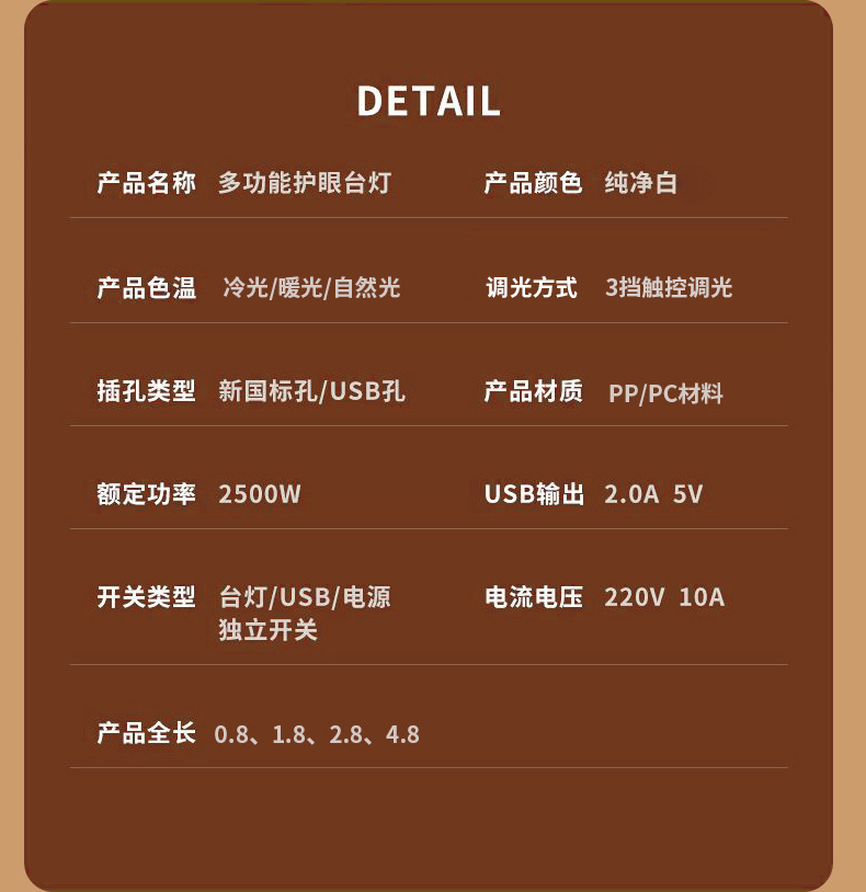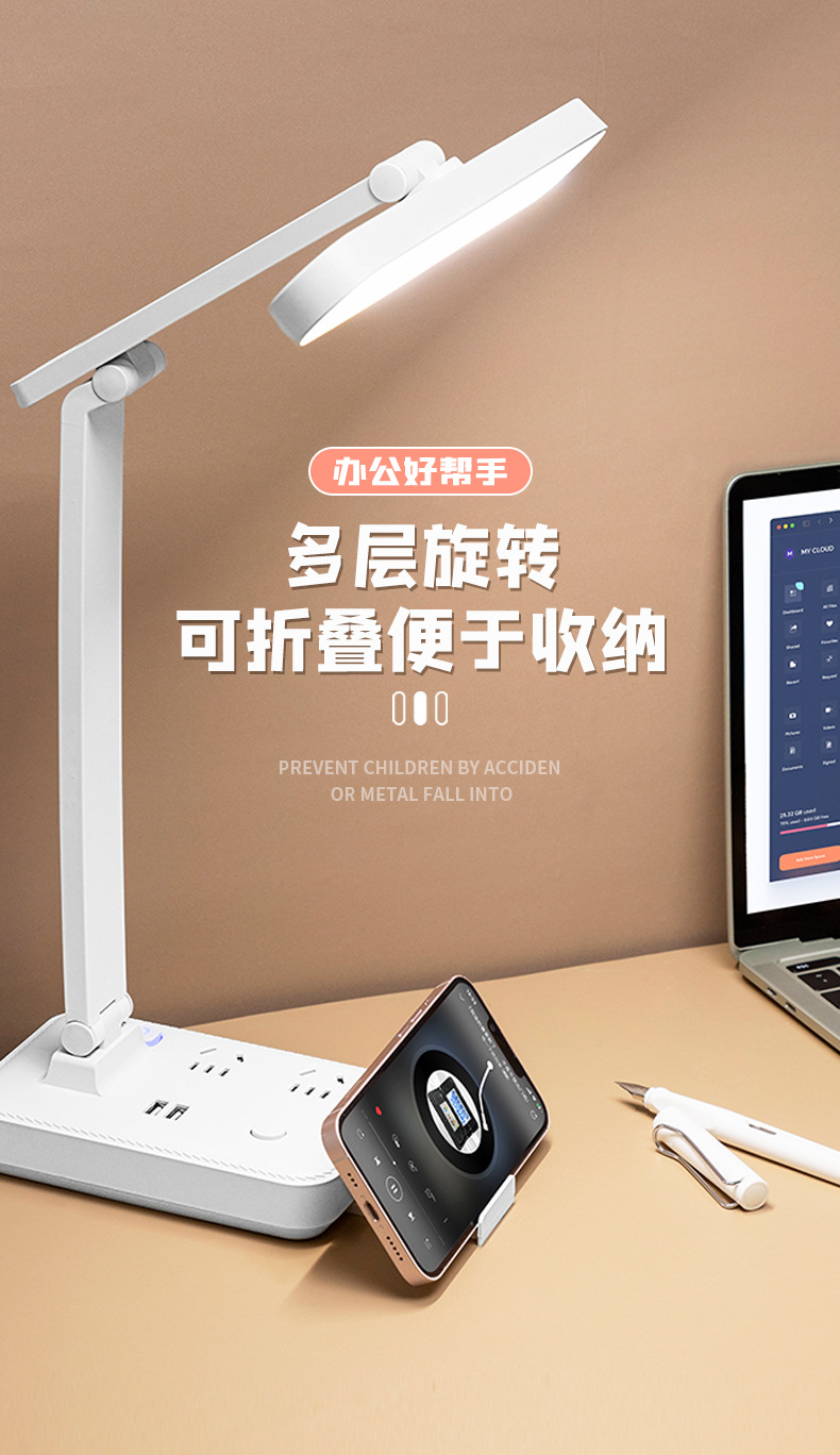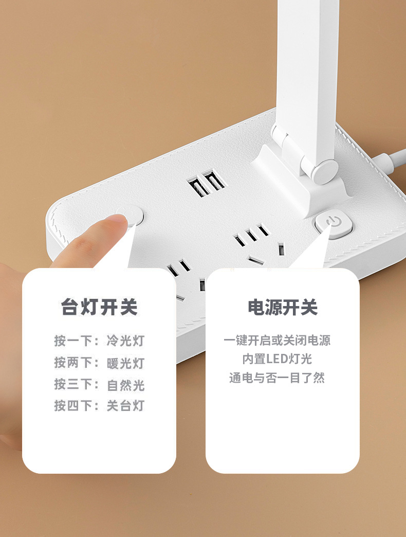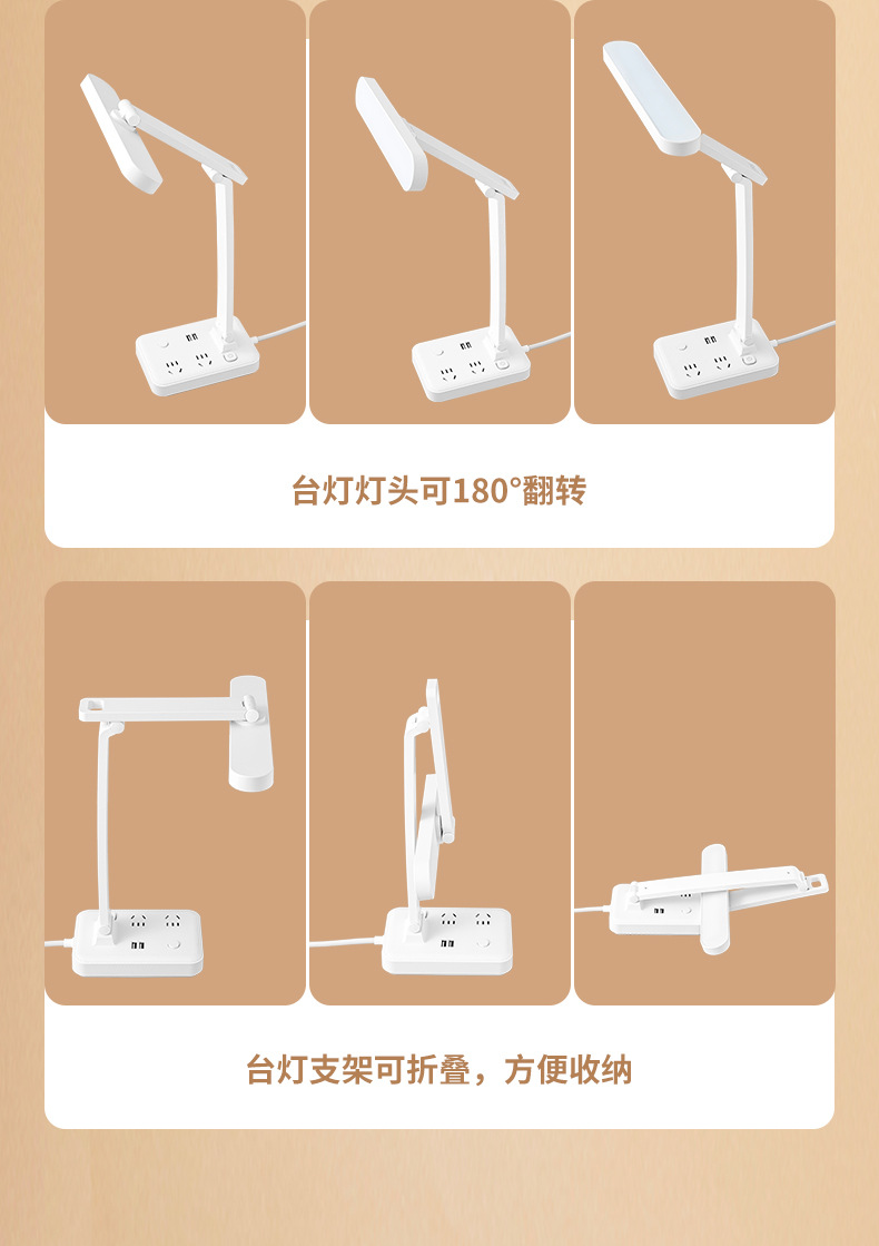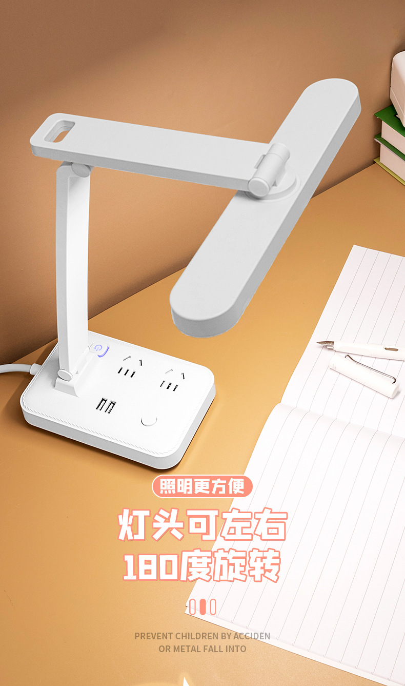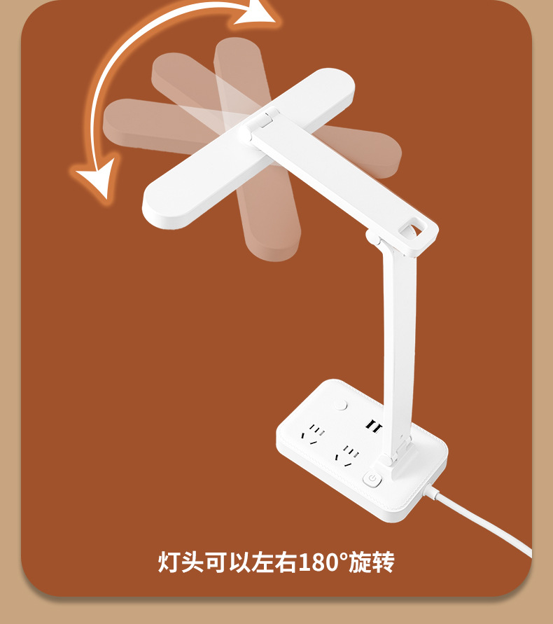 目保護電気スタンド学習コンセント付き一体読書灯学生寮児童近視防止寝室ベッドサイドランプ