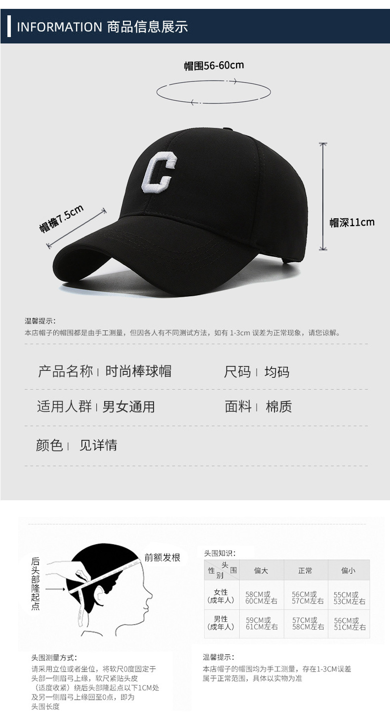 新型帽子ins韓国版ファッションカジュアル男女野球帽アルファベット刺繍アウトドアファッション日よけ日焼け止めハンチング