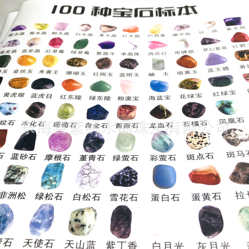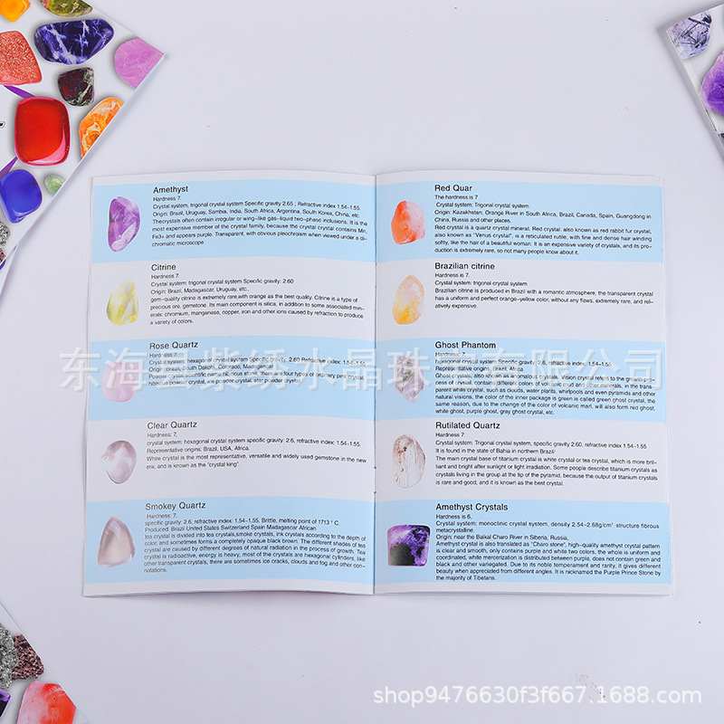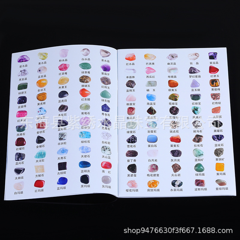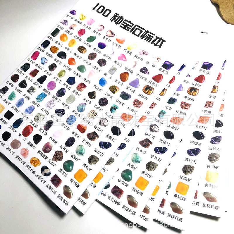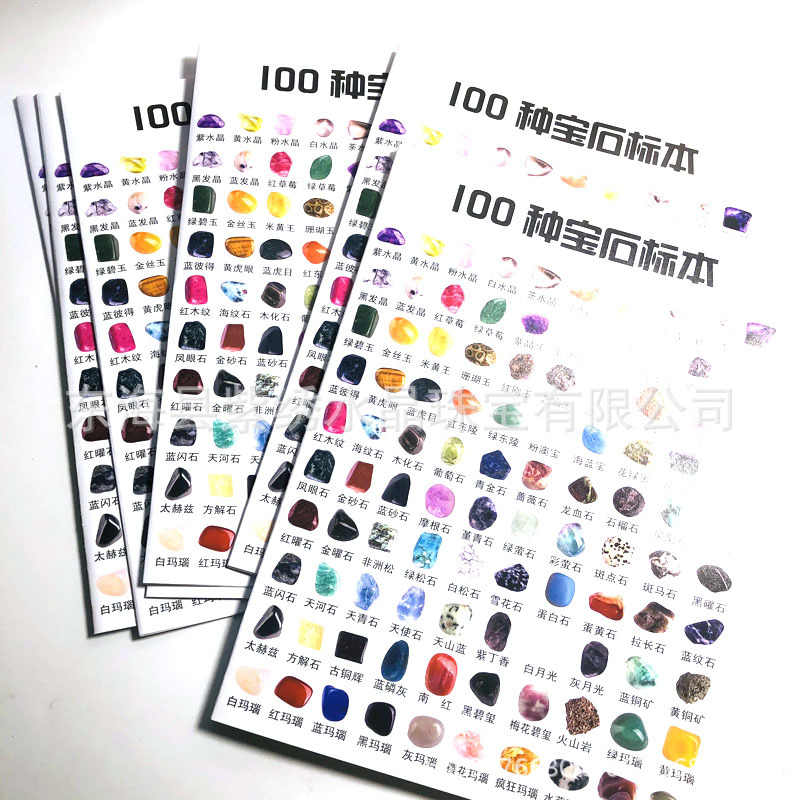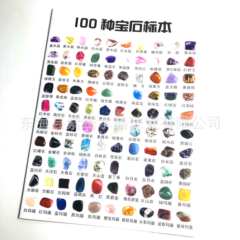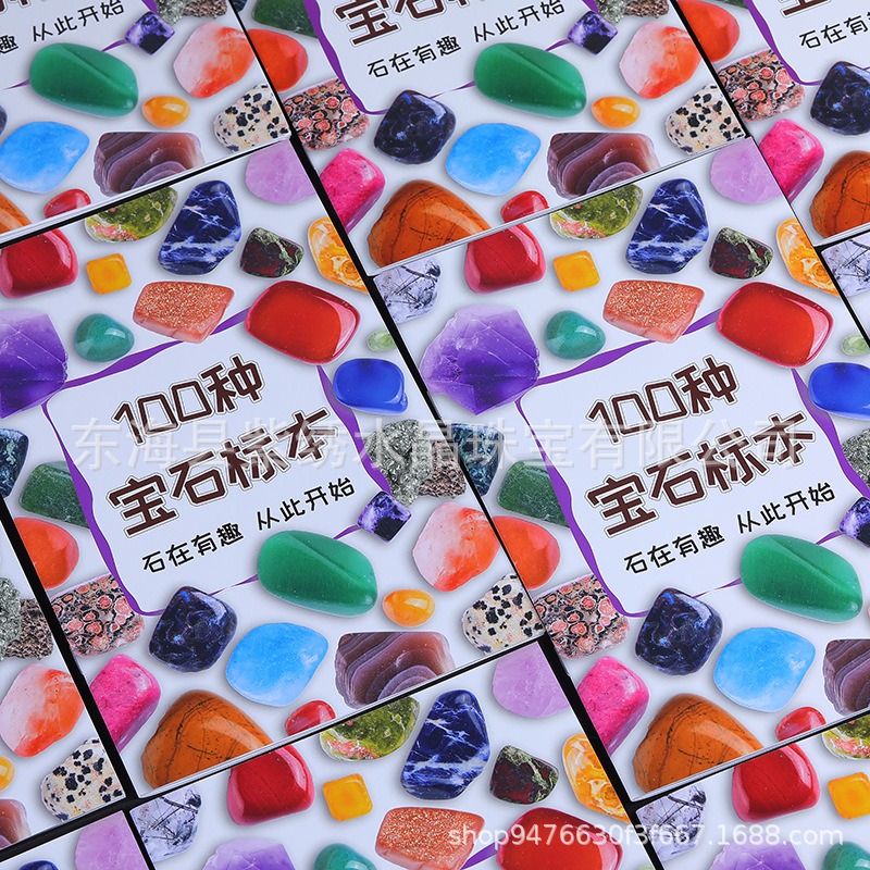 100種類の宝石標本、英語説明書、中国語説明書、研磨・研磨クリスタルストーン原石鉱物標本セット