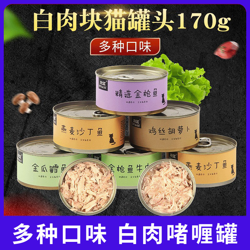牧滋ペット用品猫食糧白肉塊猫缶詰魚缶詰成幼猫猫間食湿食糧170g