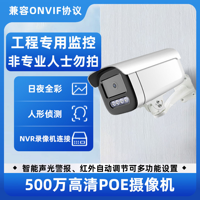 户外监控摄像头超高清500万像素防水安防国标POE室外商用监控头