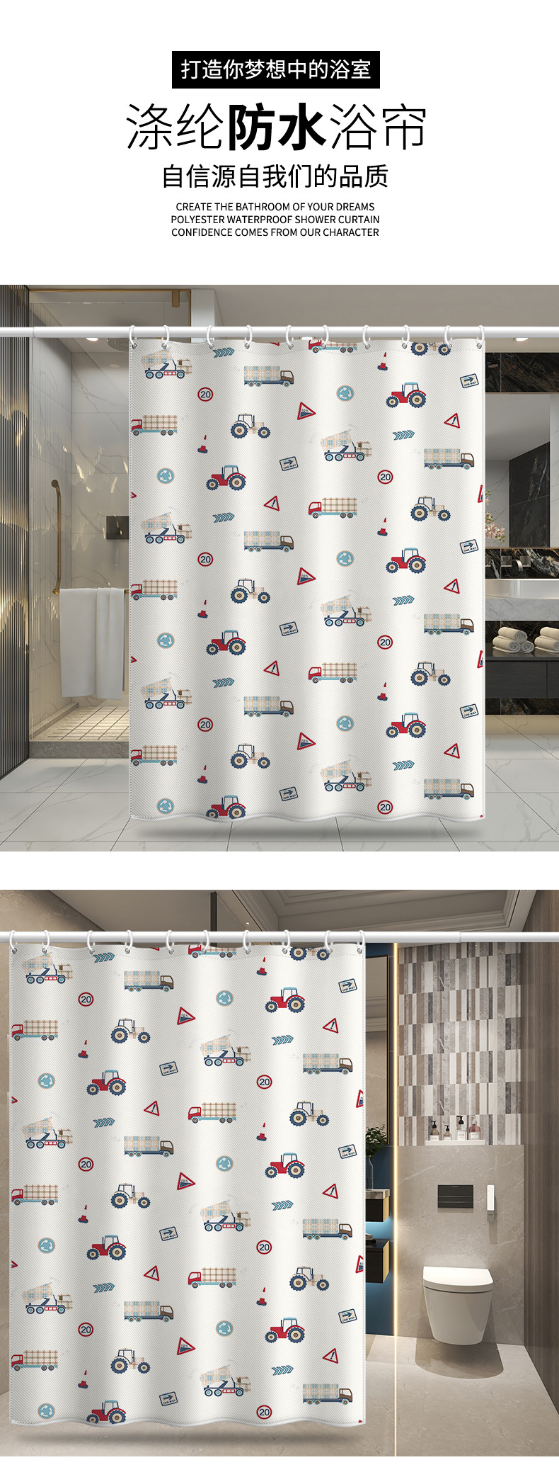 アマゾン国境を越えた電気商防水ポリエステルバス帳ホテルシャワーカーテン工場児童アニメ車