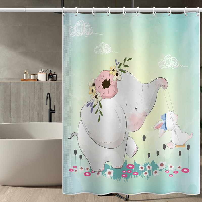 森系ウサギの新型創意ファッションポリエステルシャワーカーテン浴室アニメデジタルプリント防水クロスボーダー代発カーテン
