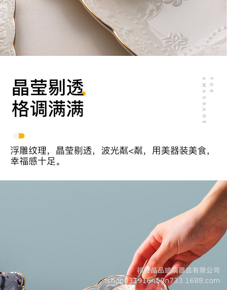 ネットレッド食器ins風金辺ハンマー家庭用ガラスサラダボウル和式客間創意透明果物皿