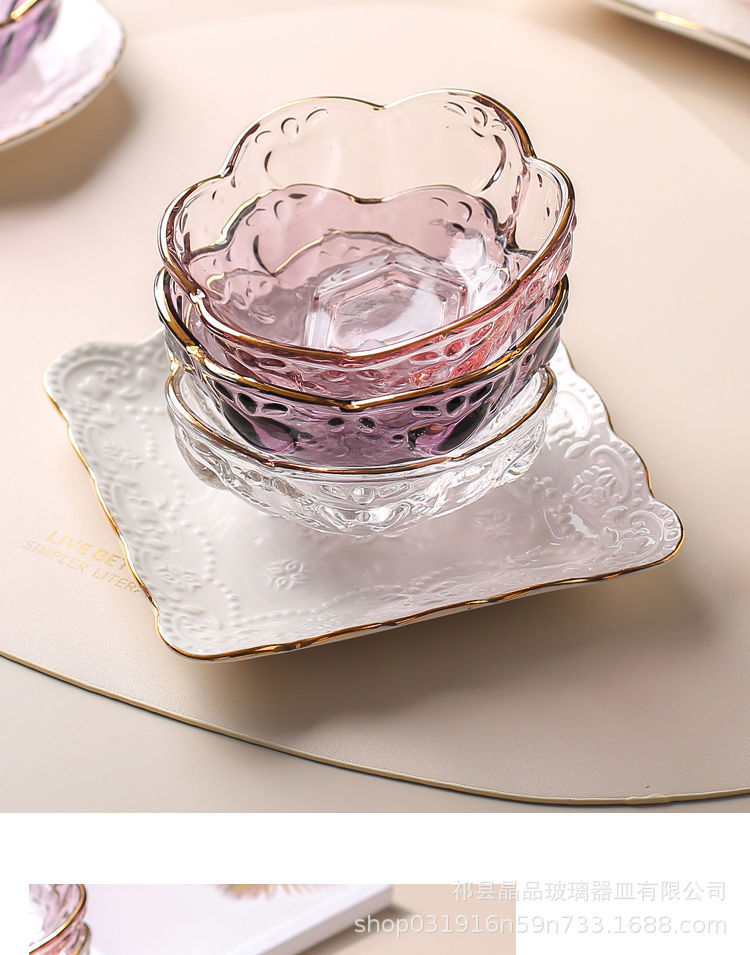 フルーツボウル日本式ガラスサラダボウル金辺かわいいシングルデザートボウル家庭用小皿ハンマー桜花びらボウル