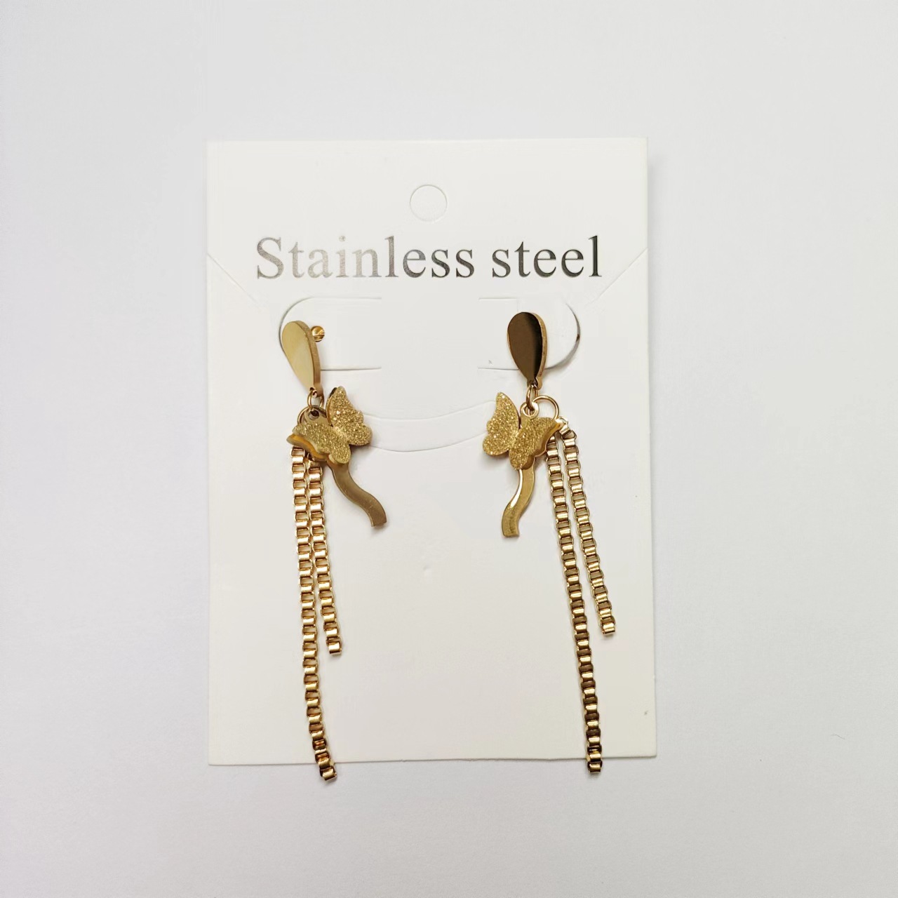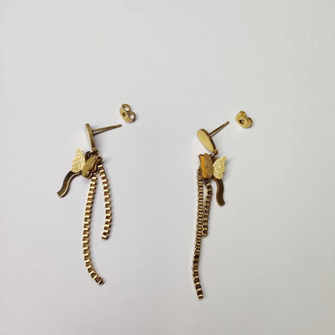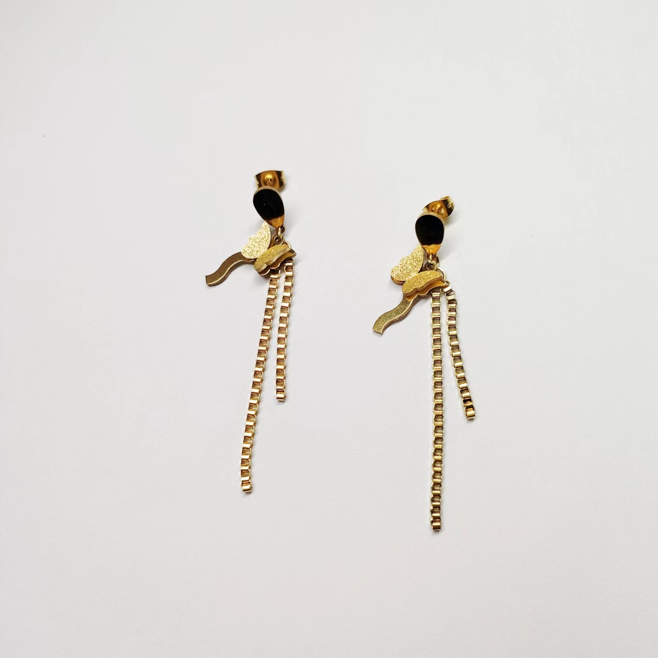 蝶流蘇耳線2023年新型潮18k金耳飾り女性小型ファッション彩金イヤリング森系イヤリング