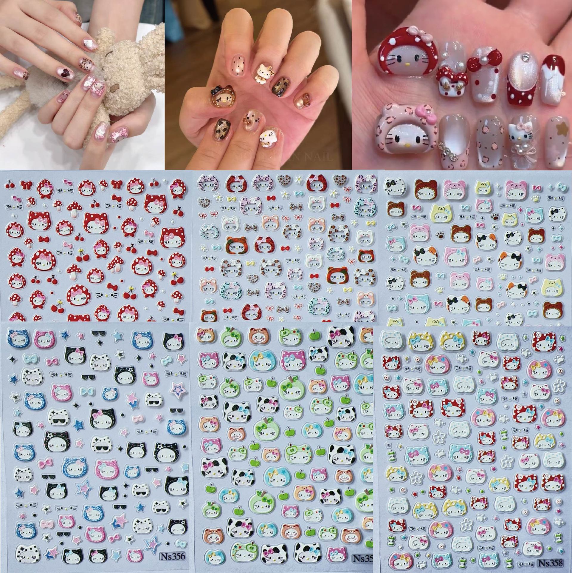 立体浮雕KT猫头美甲贴纸 可爱卡通猫5D浮雕美甲贴纸 NS353-358