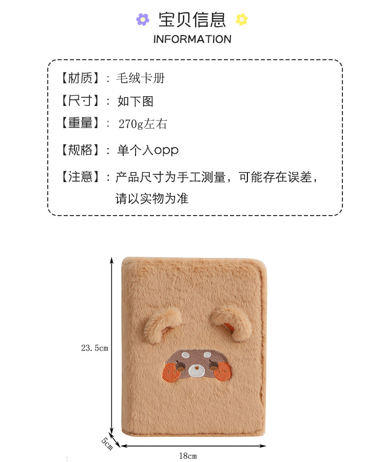 ふわふわぬいぐるみカードブック 3inch枚入り 四格取り外し可能 インス風フォトアルバム インス風フォトアルバム収納ハンドブック