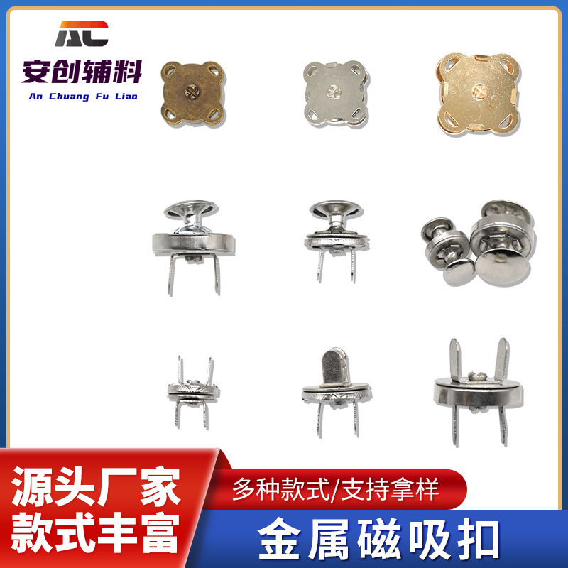 現物供給バッグリベット磁気バックル片面突き磁石バックル足付き鉄石バックル金属リュックサック磁気バックル