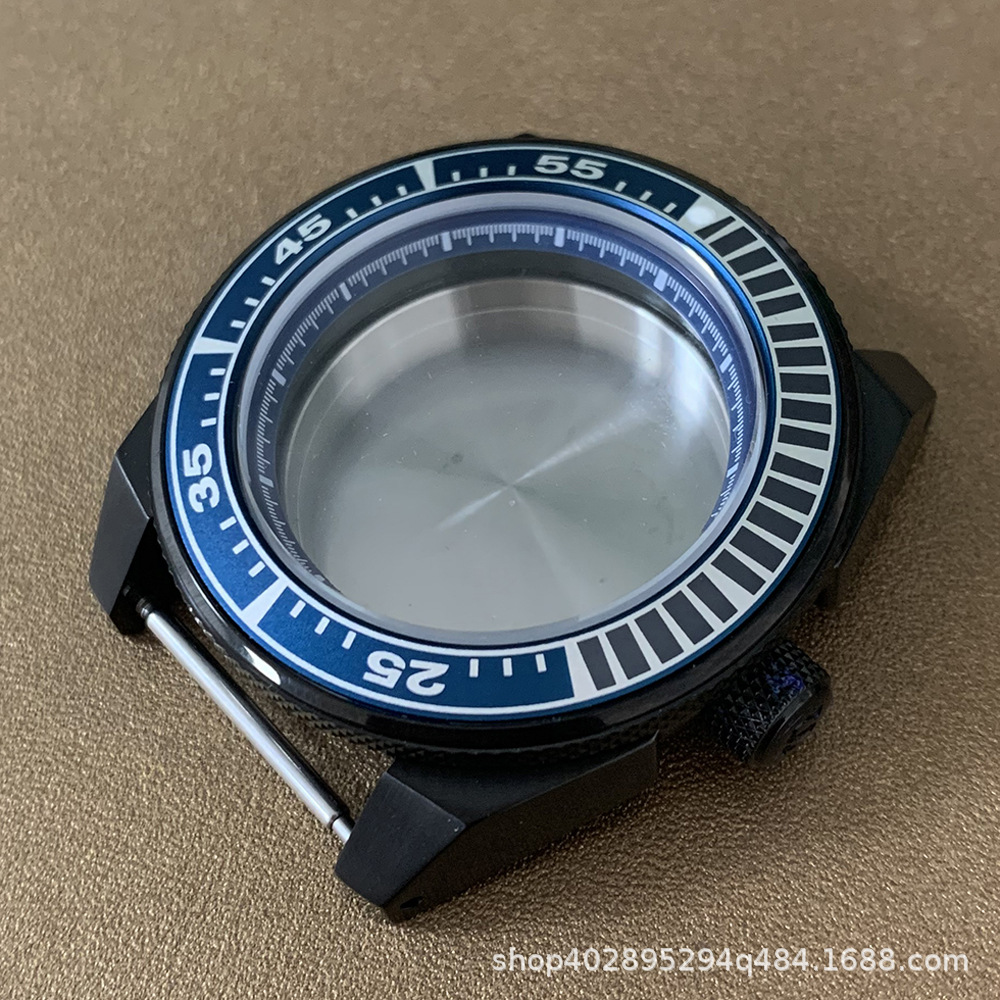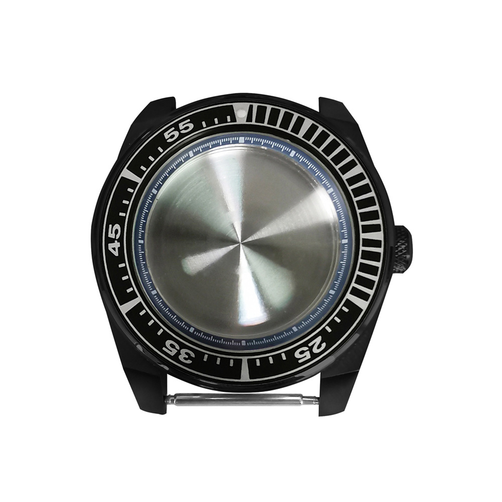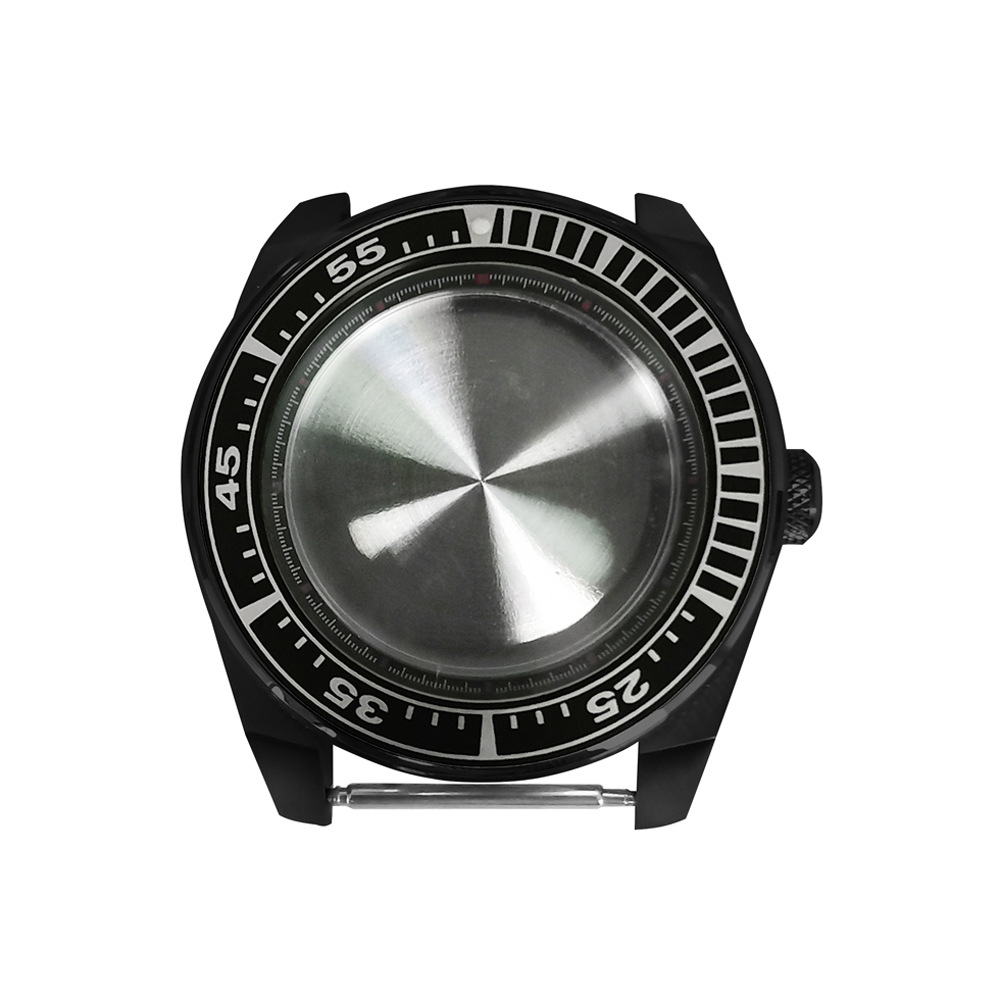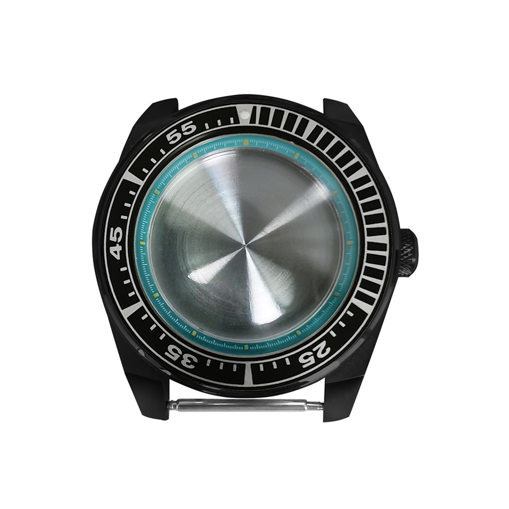 腕時計ケースnh35ケースpvd黒色ステンレスケース43mm精鋼サファイアガラス付きnh35
