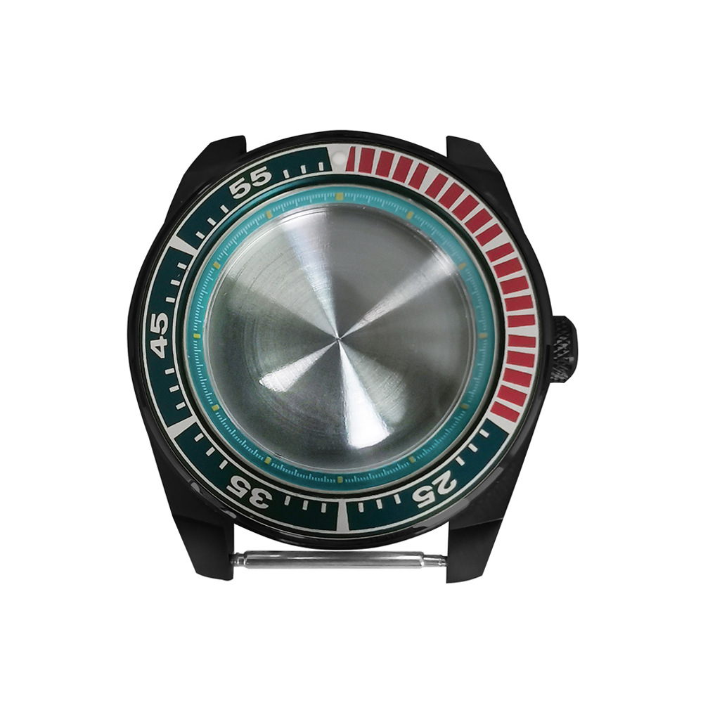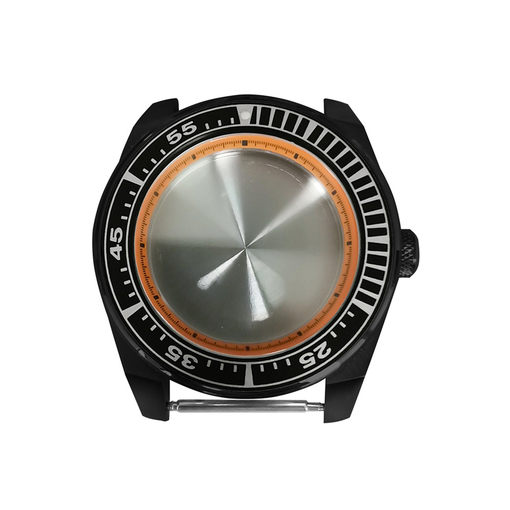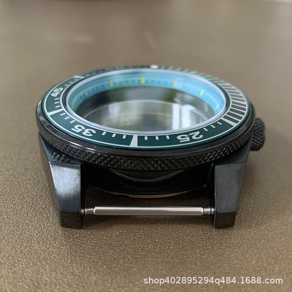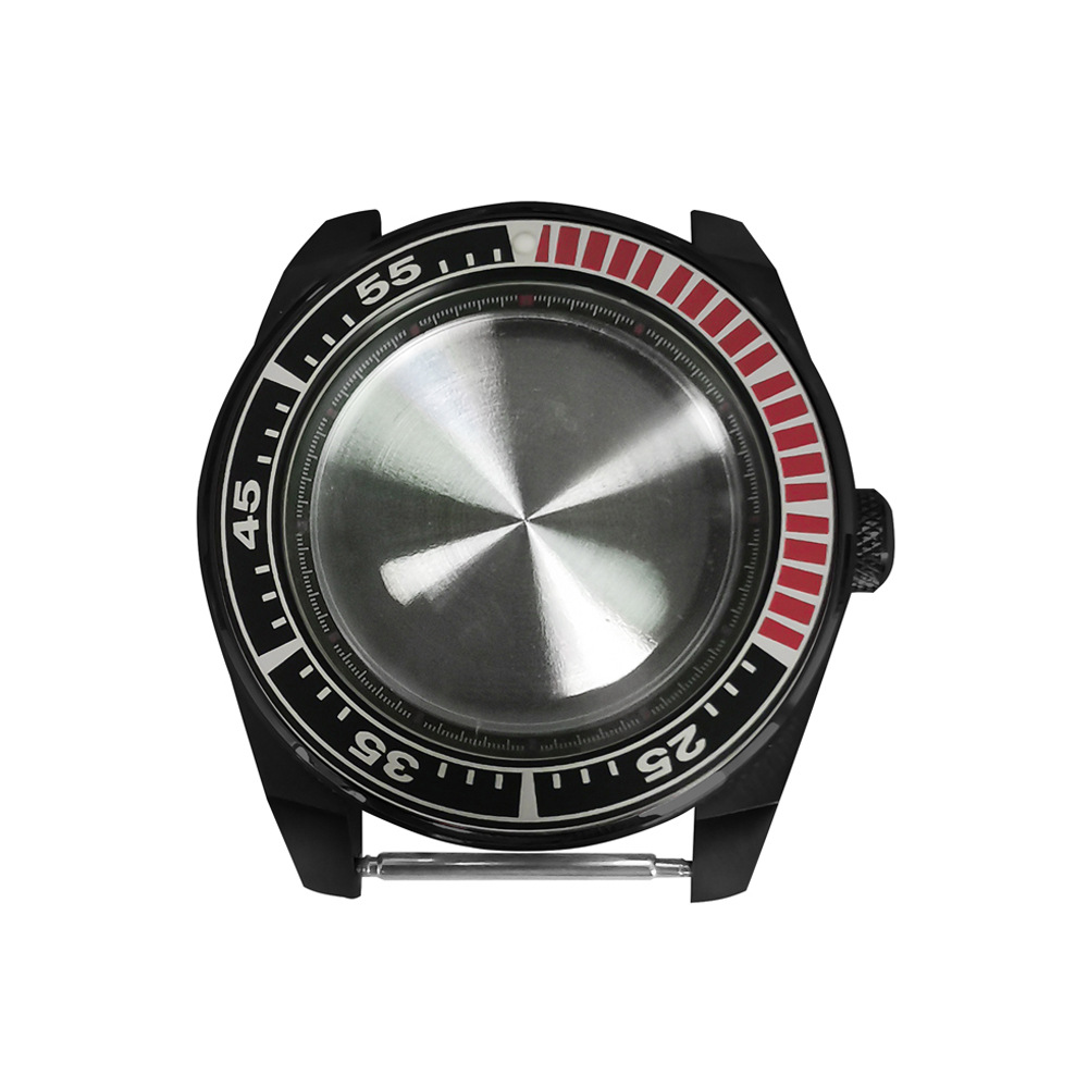 腕時計ケースnh35ケースpvd黒色ステンレスケース43mm精鋼サファイアガラス付きnh35