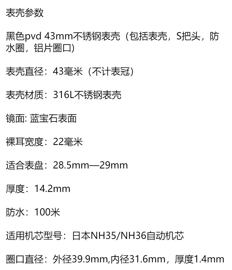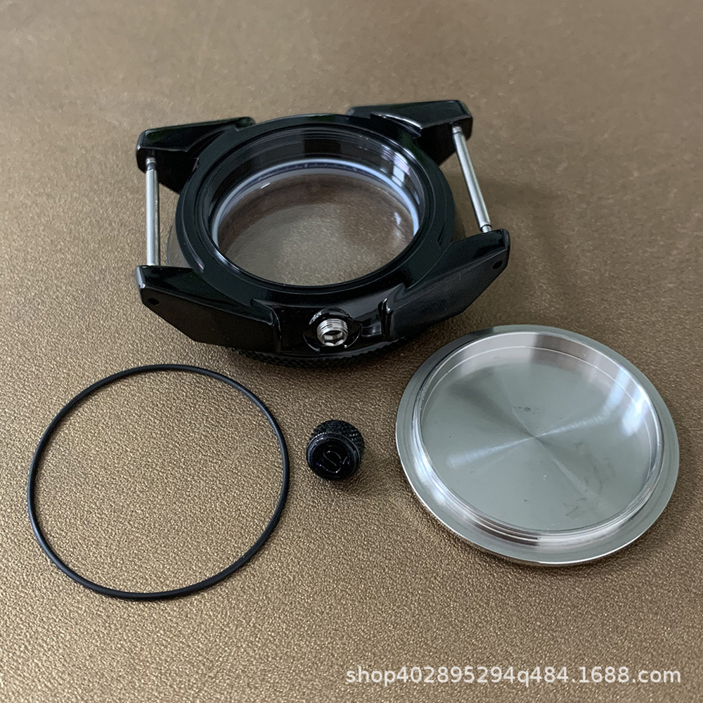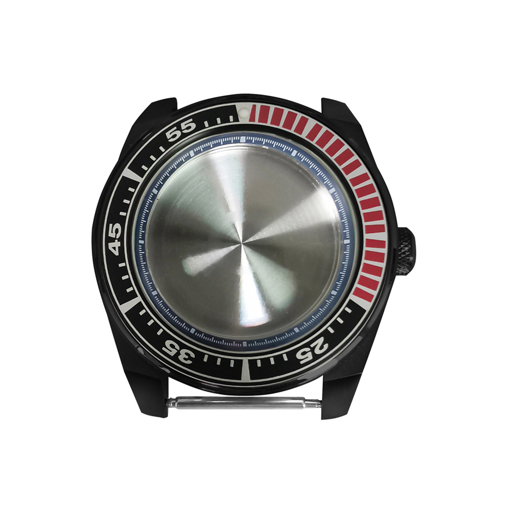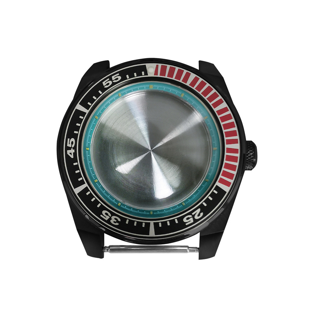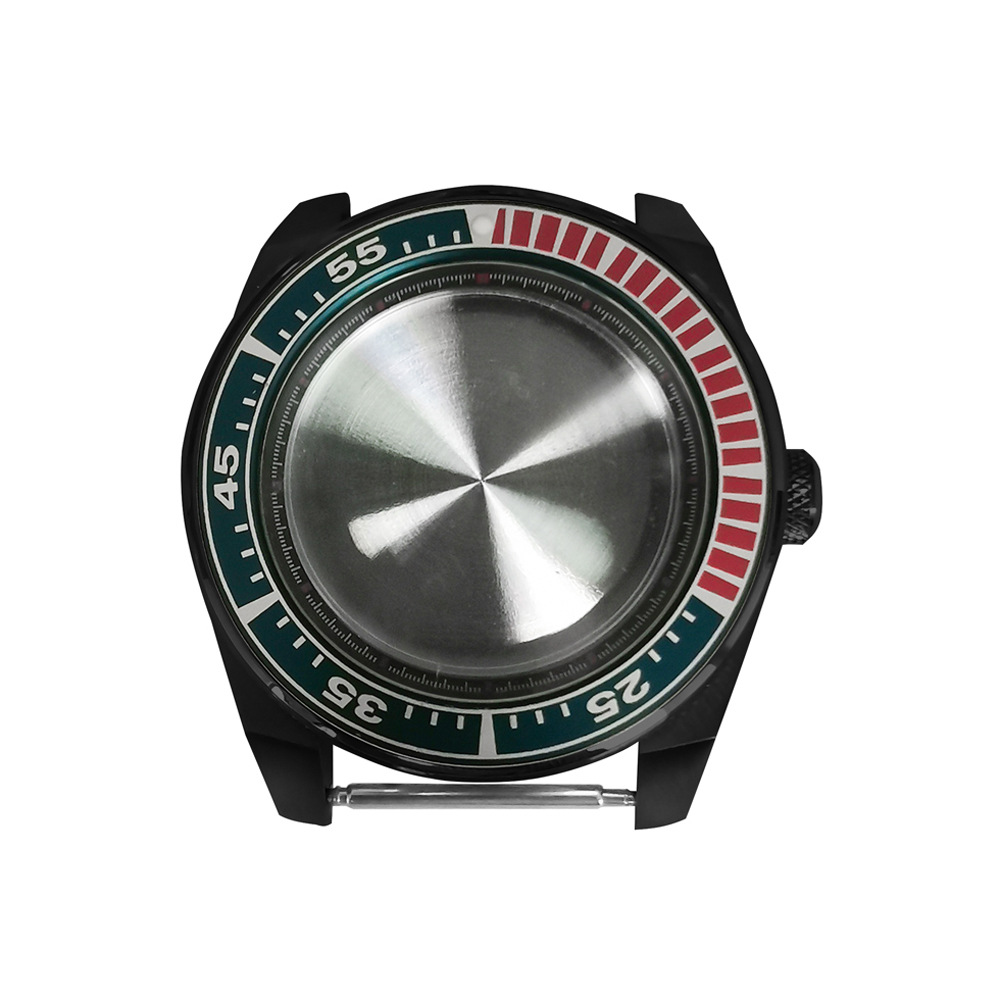 腕時計ケースnh35ケースpvd黒色ステンレスケース43mm精鋼サファイアガラス付きnh35