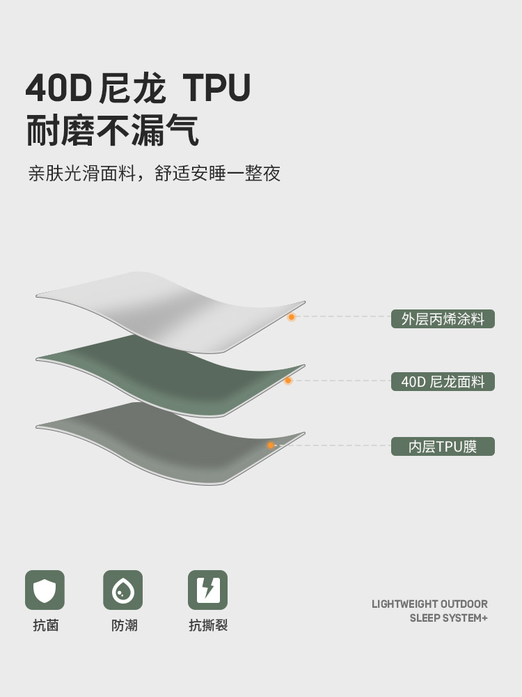 クロスボーダーアウトドアナイロンTPUインフレータブルパッドポータブル足超軽量自動寝マットテントマットシングル一体式