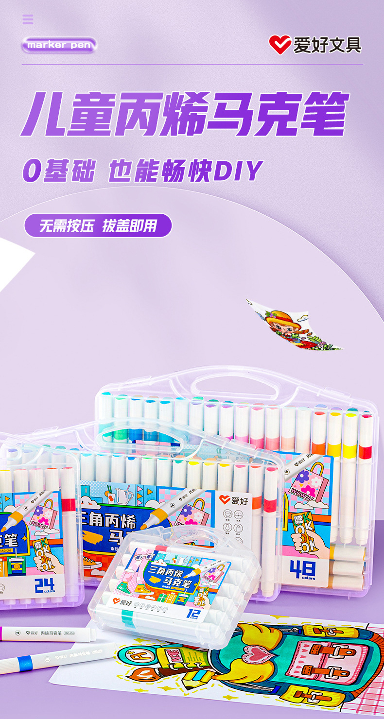趣味文房具三角アクリルマークペン箱入り学生用絵画美術専用落書きアクリルペン透けない色