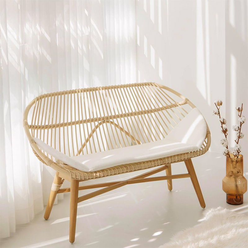 シンプル籐編みソファカジュアルバルコニー籐椅子別荘シングルダブル籐椅子庭ガーデン真籐木製