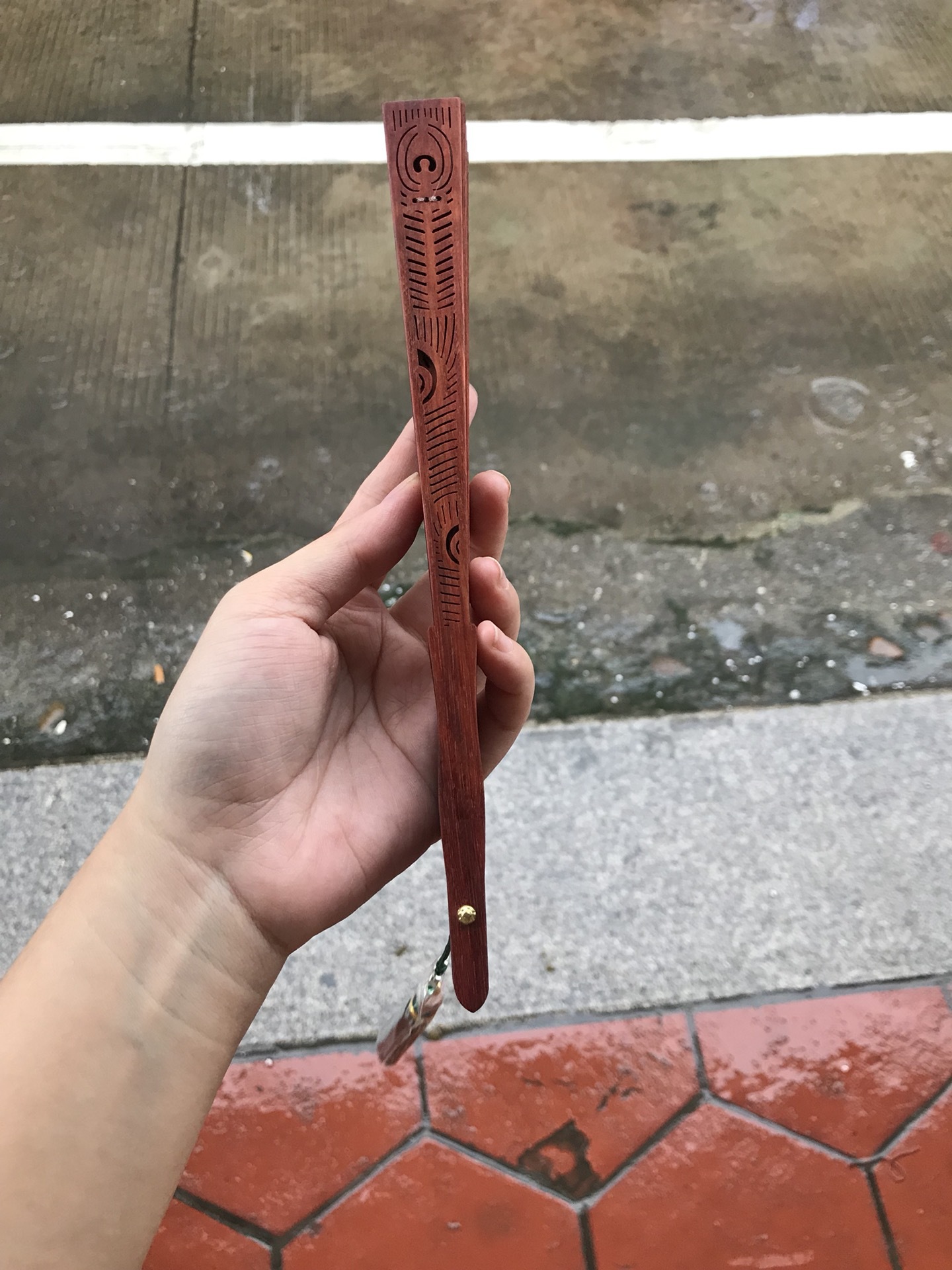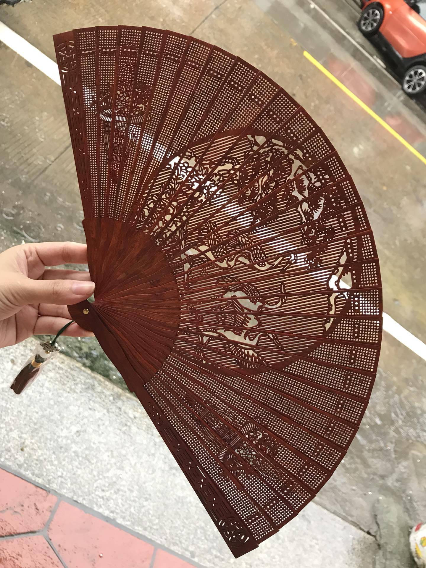 紫檀木は壺の自動車のキーホルダーを持っています。