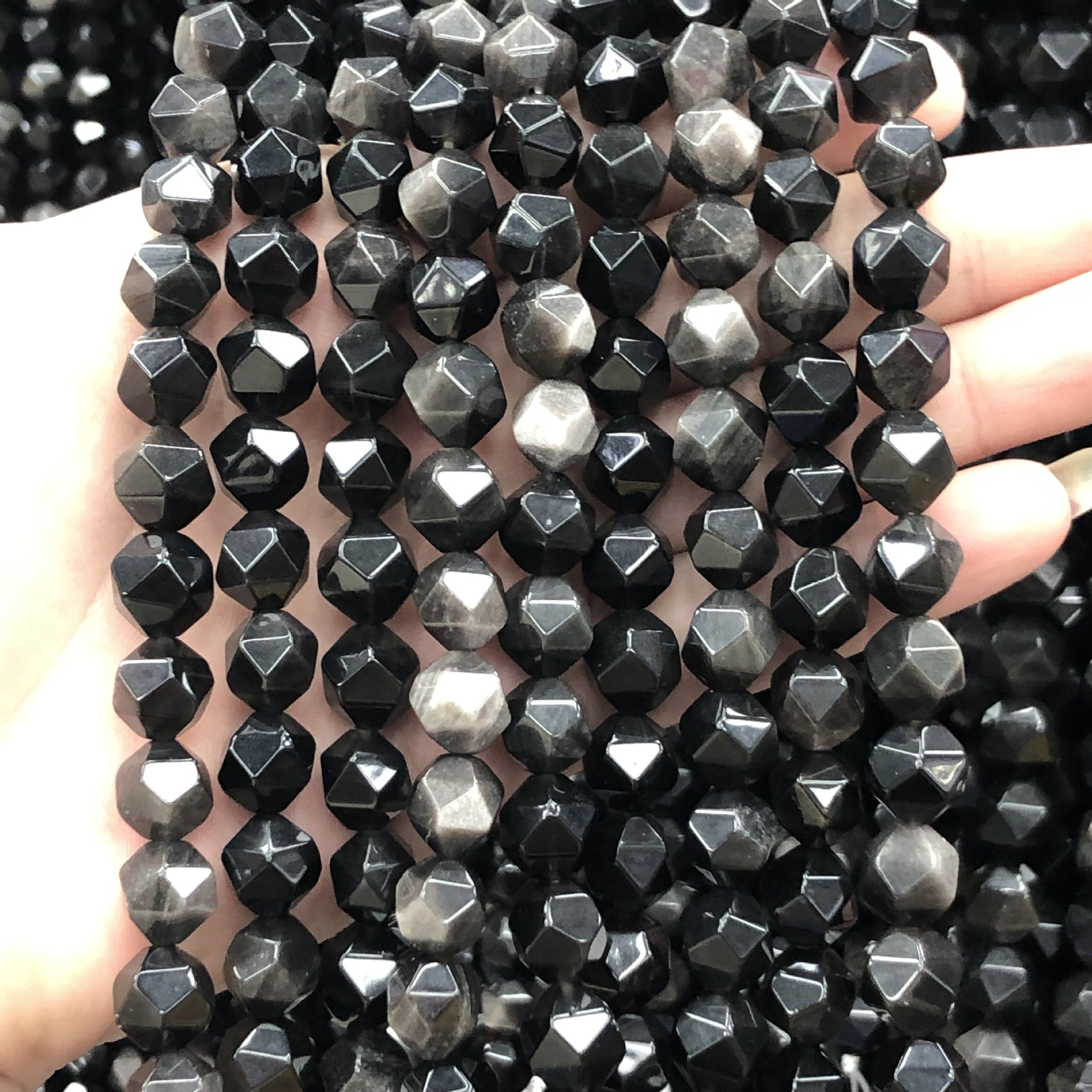 新型天然切断面銀曜石6-12mmバラ半製品diyブレスレットネックレスアクセサリー部品卸売り