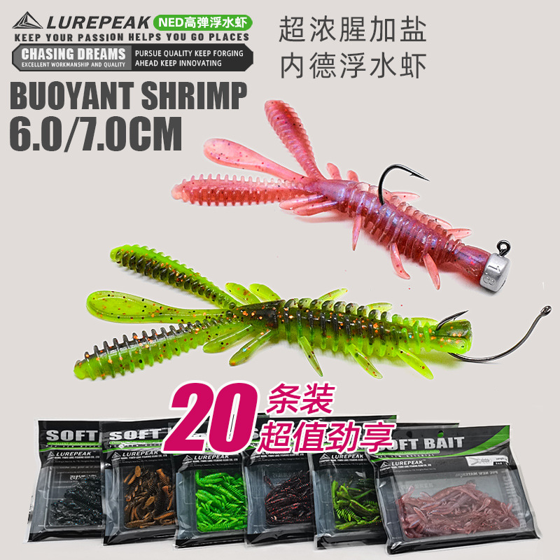 Seelucker浮水エビソフトルアーインナーダッド注ぐ釣りブラックピットスズキイクラ路亜エビ型ソフトルアー軟虫