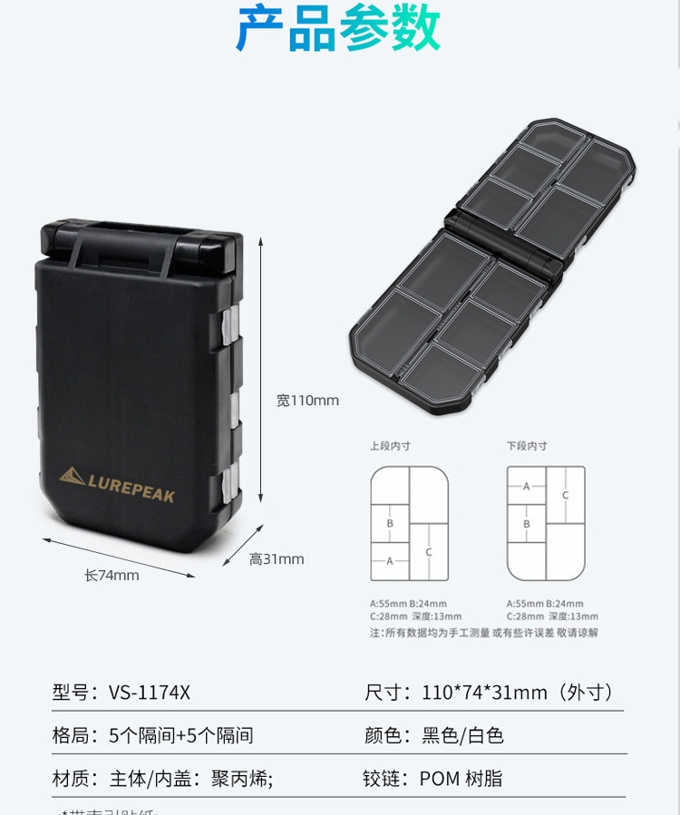 Lurepeakルアーアクセサリーボックスポータブル収納ボックス二重餌ボックスピンスパンコールミニチュアフック釣り収納