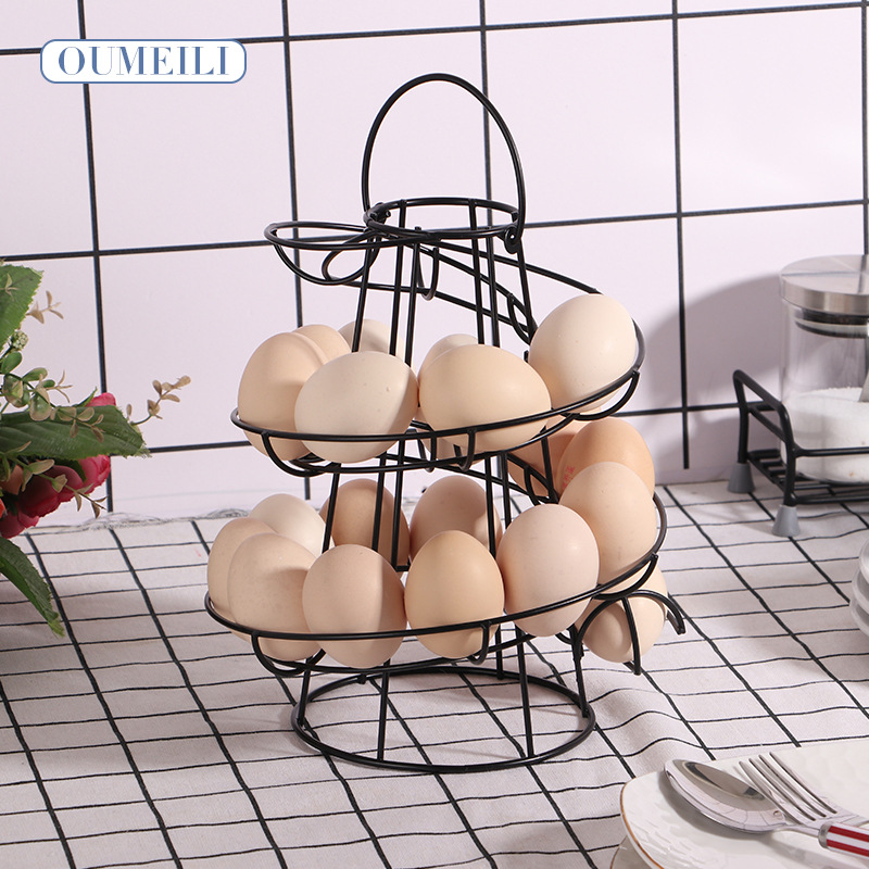 台所の創意的な螺旋式の卵の棚の家庭の鉄の芸は多く卵を持ってかごの卵の収納の棚を掛けます。