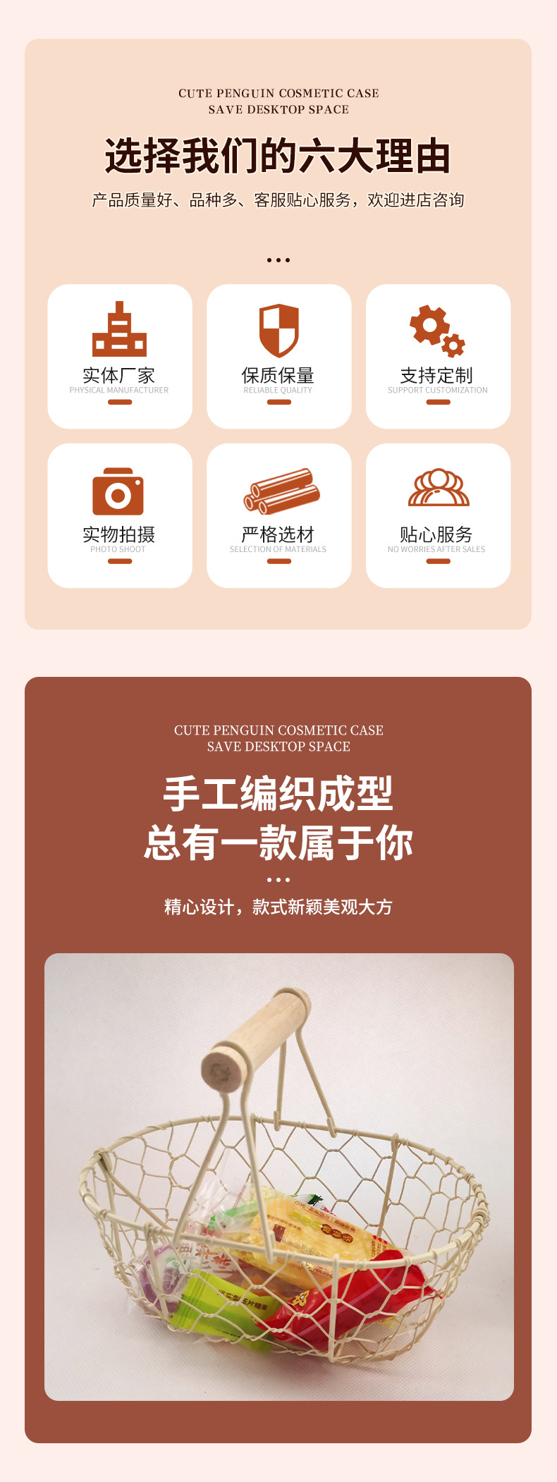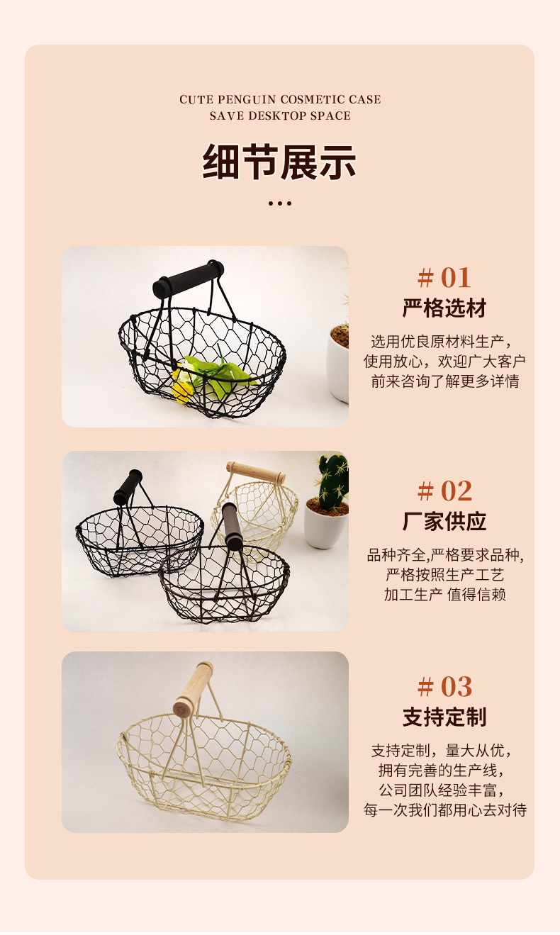 クロスボーダー乱線船形金物鉄線バスケットシンプル花果野菜手提げバスケット化粧品手作りバスケット