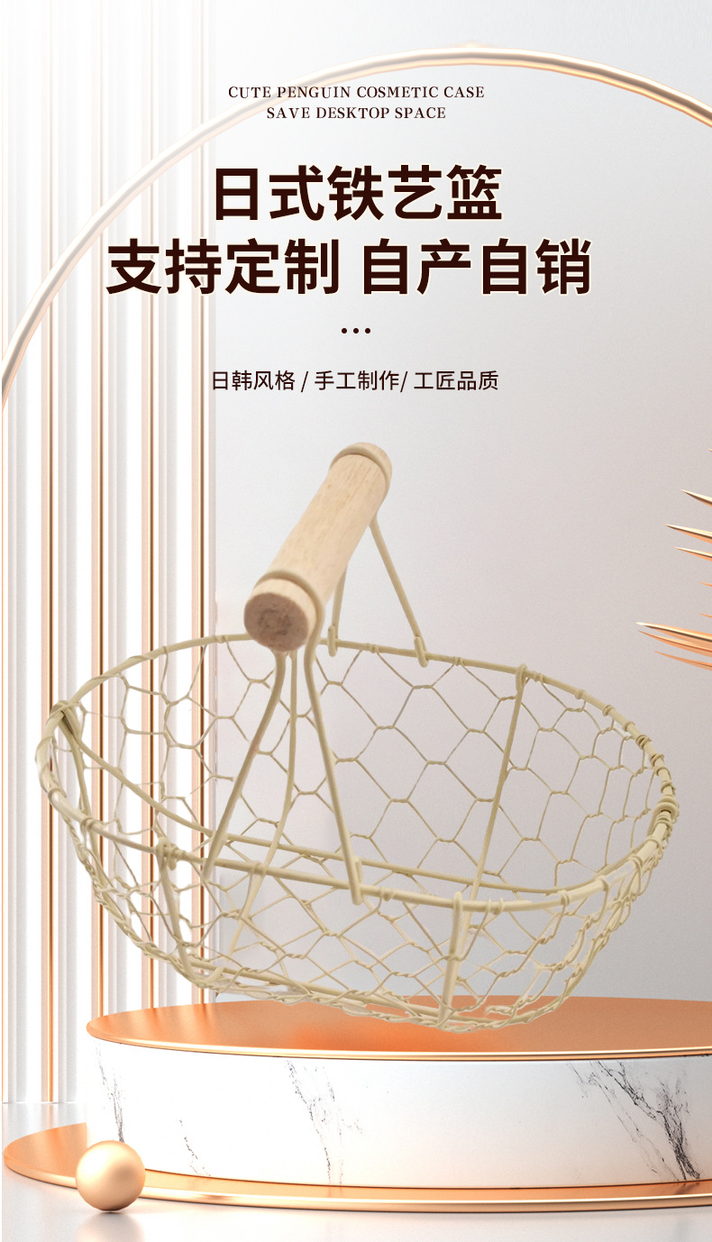 日韓ins鉄製雑貨収納バスケット生活館手提げバスケット果物バスケット手提げバスケット収納バスケット