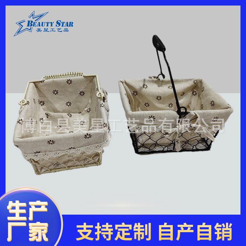 ホーム雑貨鉄芸カバー布小枠収納バスケット雑品収納バスケット裏地付き取っ手収納枠ピクニックバスケット