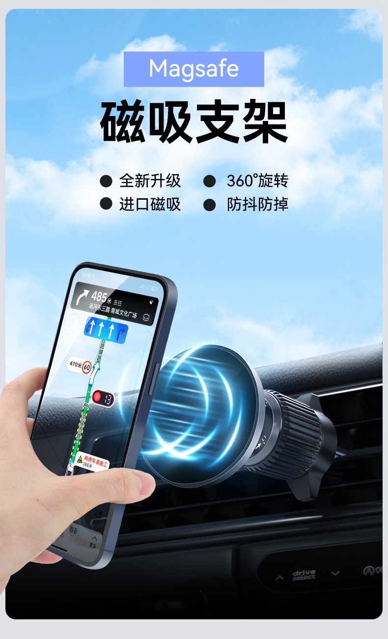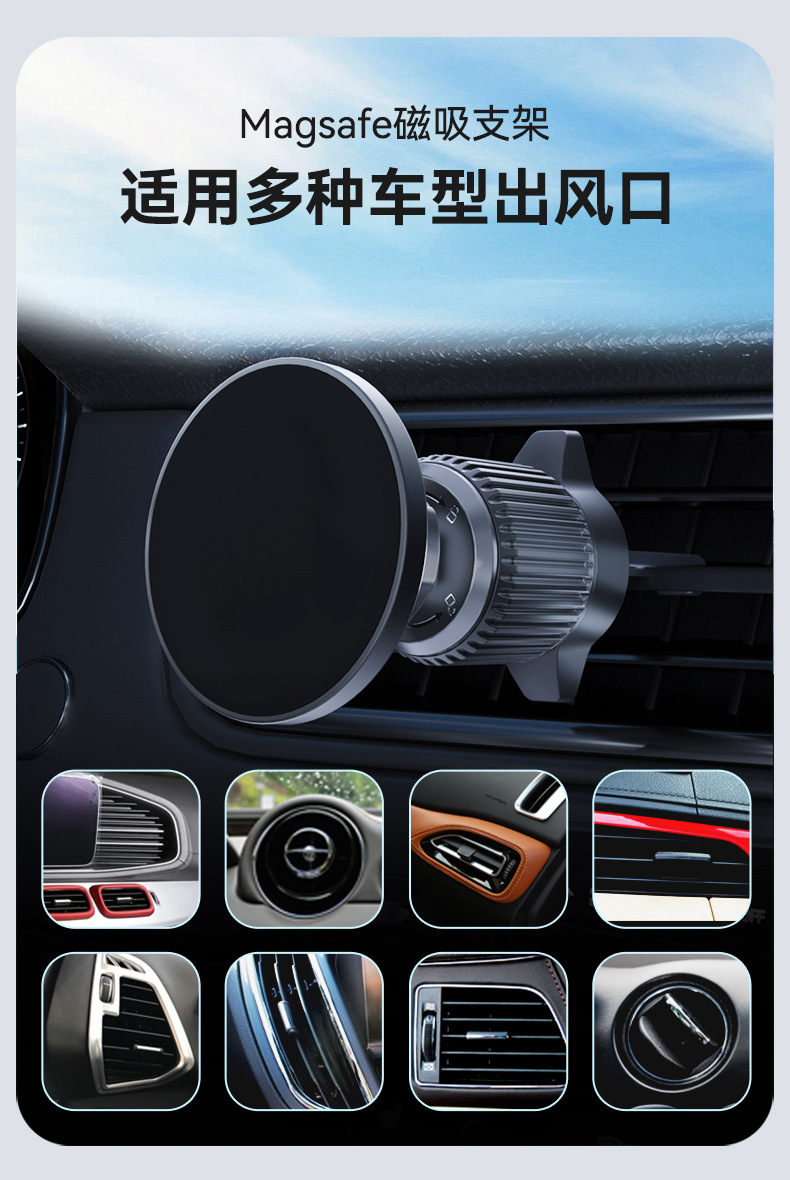 クロスボーダー爆型車載携帯電話スタンドmagsafe磁気吸引スタンドナビゲーション自動車吹出口スタンドスナップ式