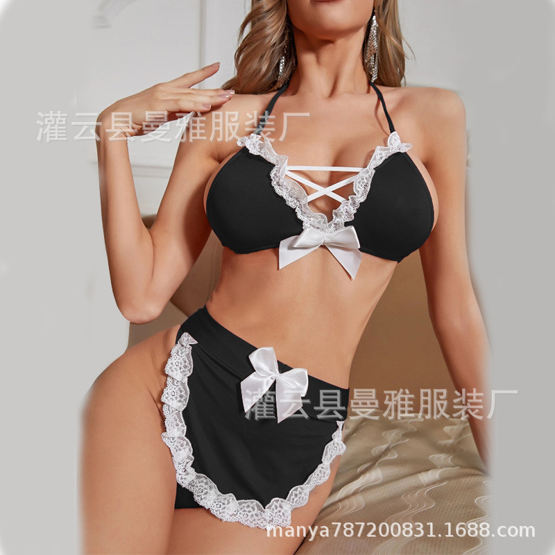 欧米の外国貿易のセクシーな女性のセクシーなセクシーな下着の3点式のメイドの役はスーツのセクシーなメイドのスーツを演じます。